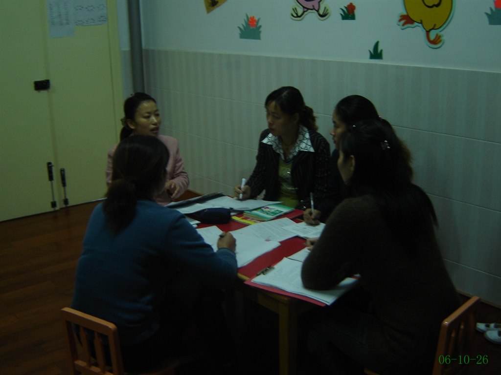 新学期、新挑战,龙幼教师在课堂教学实践中不断反思,不断成长。10月26日,我们小班教研组又开展教师“一课多磨”的课堂教学展评活动,上午10:05,樊静娟老师向我们展示了小班语言活动:《小猪变干净了》。 窗外,秋雨绵绵,带着丝丝凉意,而小三班的活动室却是热闹非凡,宝宝们一会儿模仿小动物走,一会儿学学小动物的对话……在听一听、说一说、学一学中宝宝们懂得了要做个爱清洁、讲卫生的好孩子。活动结束后,我们教研组全体成员围在一起,各抒己见,对本次磨课活动进行点评。 通过这样的磨课活动,让我们教研组的教师在实践中磨炼,逐步提高自己备课、上课的能力,改善自己的教学策略,从而使自己的教学水平更上一个新台阶。 2006年10月27日