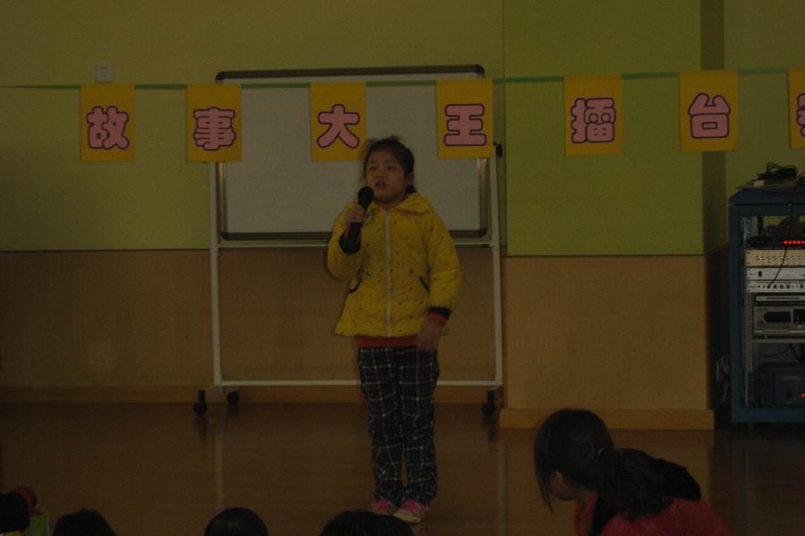 比赛在热烈愉悦的气氛中拉开帷幕,当小朋友们用稚嫩的童声把《青蛙飞天》、《小红帽》、《咕咚来了》、《毛毛虫》、《三只小猪》等一个个经典的童话故事带到比赛现场时,掌声一次次为他们响起。有的孩子已经是第二次站上这个活动的舞台,多了几分成熟,多了些许自信,与上学期第一次比赛相比,声音变响亮了,胆量也变大了,有些小班的孩子终于战胜了恐惧,勇敢地举手上台。比赛结束后,小朋友们举手投票,选出了自己心目中的“故事大王”。最后王园长讲话,她为这次活动给予了高度的赞扬,同时也提出了许多建设性的意见和建议,如故事演讲的顺序,背故事还是讲故事、故事题材的选择等,希望通过这次全园性的讲故事比赛,让孩子们交流分享更多的故事,增强自我表现的热情和自信,培养幼儿的想象思维。