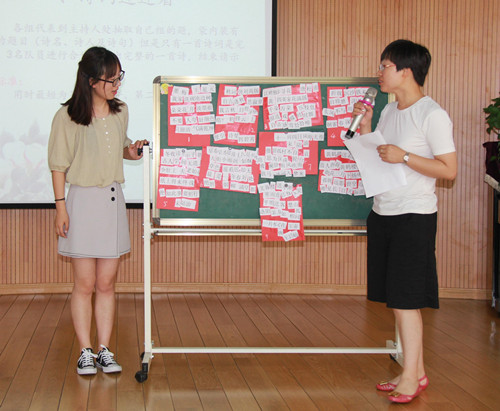我国是拥有五千年历史的文明古国。诗词在传承中华文明、书写中华文化、记载中华历史中发挥重要作用。为了弘扬中国传统诗歌文化,丰富龙幼校园文化生活,增加校园文化生活的创造性,提升校园文化活动的质量,展示龙幼教职工在诗词方面的热情,2018年5月28日,龙虎塘街道中心园工团特此举办“续读名家诗词、铭记中华精髓”最美诗词活动。 环节一:诗词大接龙,妙语连珠 中午12点40分,在大家的热切期盼下,“诗词接龙”拉开了本次诗词大会的序幕。每个年级组派出了3名参赛队员,每队派1名代表从题袋中抽取自己小组所要回答的题交给主持人,由主持人来说出诗词的上句或下句,选手该立马回答下句或上句。“千山鸟飞绝”,“万径人踪灭”;“晴空一鹤排云上”,“便引诗情到碧霄”;“人闲桂花落”、“夜静春山空”……选手们认真思考,反应迅速,不时有精彩诗句脱口而出,抑扬顿挫、情感充沛的吟诵让观众们也融入其中,尽情享受。 环节二:诗词连连看,默契配合 诗词大会的第二环节是“诗词连连看”,选手们需要在规定的时间内拼凑出完整的诗词。这不仅考验着老师们对诗歌的熟悉度,也培养了大家的团队合作精神。各组队员拿到题目袋后,争分夺秒,集思广益,绞尽脑汁。拼成一首完整的诗词后,还要迅速粘贴在底板上,这真是速度与智慧整体呈现。在集体检验时,老师们睁大眼睛,屏住呼吸“哇,太厉害”、“不对,她们少了一字”……小小的比赛却碰撞出了大大的火花,优美的词句,丰富的情感,在比赛的同时也打动着老师们的内心。 环节三:飞花令对决,花落谁家 终极对决——“飞花令”更是将活动推向了高潮,选手们根据主持人提供的“花”、“春”、“月”等关键词,要依次快速地说出诗句,若10秒内接不上者直接被淘汰。参加决赛的选手在诗词储备、临场反应和心理素质等方面的精彩表现,赢得了在场观众们的阵阵掌声。而其中吟诵处的一句句古诗词,仿佛是一条时间的隧道,引领了老师们与诗人产生心灵的碰撞,洗礼灵魂,历练人格。 本次诗词大会,尽显龙幼教师文学风采!让我们一起静静地呼吸着古诗词的文化神韵,感受生活多姿多彩,重获前行精神力量。 撰稿:张忧 摄影:潘雯雯 审核:潘雯雯