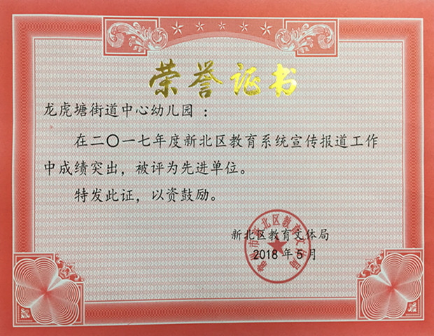 2018年5月22日下午,新北区教育文体局召开了2017年度教育宣传报道工作会议,对2017年度全区教育系统宣传报道工作先进单位及个人予以表彰。龙虎塘街道中心幼儿园荣获“新北区教育系统宣传报道工作先进单位”荣誉称号,潘雯雯老师被评为“新北区教育系统宣传报道工作先进个人”。 近年来,秉承“润泽生命、倾听花开”的办园理念,龙幼高度重视新闻宣传工作,不断加强对新闻宣传工作的领导和投入,全方位、多角度、快准实地宣传报道三园区校园动态,形成了独具特色的宣传文化。在本次会议上,潘雯雯老师作为龙幼宣传条线第一责任人,以《以“媒”为介,绽龙幼花开》为题,对龙幼的宣传工作进行了现场汇报,从“倾力三优团队,聚力三寻合作,全力三创平台”不同角度切入,全面展示了龙幼宣传报道的变革之旅。 荣誉的取得是区领导对学校宣传工作的肯定,今后,我们也将继续努力,以新北区宣传工作思路为引导,继续做好龙幼宣传工作,让宣传工作成为学校管理的第三只眼,用文字传递向上能量,用新闻展现校园风采! |