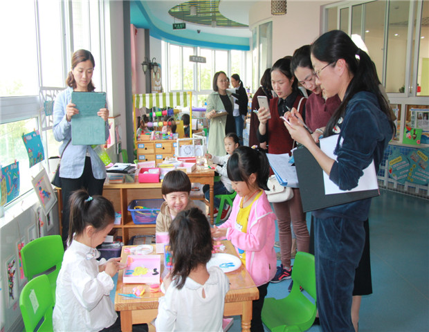 课程游戏化是江苏省幼儿园课程的一次根本性改革。为推进课程游戏化建设,提高幼儿园课程质量,作为常州市新北区首批课程游戏化建设项目园之一,2018年5月8日下午,龙虎塘街道中心幼儿园迎来了专业导师——江苏省教育科学研究院幼儿教育与特殊教育研究所张晖所长。同时,来自新北区姐妹园——银河、三井、春江、西夏墅四所幼儿园的园长和教师共计100余人参与了本次活动。 标准解读,评估有方 环境是支持幼儿学习与发展的教育关键因素之一。围绕本次活动主题“儿童视角下的美工区环境与互动”,张晖所长首先带领大家细致解读了美工区环境评估量表,并结合《指南》对量表中的每一条内容进行了详细说明,让老师们在今天的活动中能够更加聚焦而有目的地进行观察评估。 聚焦现场,全面开放 自课程游戏化实施以来,在课程游戏化实施背景下,龙幼从游戏环境、游戏时间、游戏材料、游戏评价等方面着手,不断尝试课程改革。本次活动玲珑园区21个班级全面开放了游戏现场。在高亚媛园长的陪同下,张晖所长及各园园长实地参观了龙幼的室内外游戏环境。参观过程中,张所长不时停下脚步,在与教师的对话中传递课程观和儿童观。 参加本次活动的百余名教师则各自进班结合评估量表,重点对美工区展开观察评估。龙幼各班老师根据年龄特点创设的游戏天地,满足幼儿需求提供的材料投放,以及孩子们自由自主创造愉悦的游戏状态,大胆展示自信交流的表现,给参加活动的专家和老师们留下了深刻印象。 交流研讨,碰擦火花 现场观摩结束后,全体老师齐聚玲珑多功能室开展了现场教研。张晖所长带领大家沉下身子,从今天观察到的真实活动出发,发现问题,提出问题,研究问题,解决问题。参加教研的老师代表紧扣观察量表中“材料提供、材料摆放、作品内容、作品展示、自然激发”等评估要点进行打分,在阐述打分理由的同时,还与张所长探讨在运用评估量表中遇到的困惑,一个个深度发言和交流碰撞引发了在场每位教师的共鸣。 专家引领,深度剖析 最后,张晖所长结合大家的研讨,利用短视频带领大家共同学习了如何真正基于儿童视角来建设美工区,如何让环境真正支持幼儿发展。张所长先进的理念、睿智的语言、生动的案例、贴近教育实际的讲座内容,帮助大家进一步明晰了幼儿园环境评估的意义所在,对引领各园追求课程内涵的高质量,全面提升幼儿园课程游戏化实施水平,促进幼儿各方面发展产生了重要影响。 龙幼人将怀着“永远在路上”的研究心态,扎实走好每一步。相信在专家、领导的正确引领下,课程游戏化精神将植根于每一位龙幼人的思想和行动中,从转变自身观念开始,一切为了支持孩子更好地学习与发展而努力! 撰稿:潘雯雯 摄影:潘雯雯 审核:潘雯雯 |