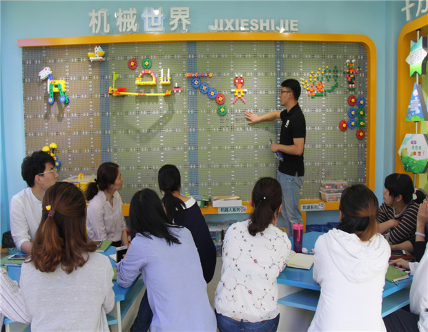 拼搭智高玩具是培养幼儿空间想象力、创新实践能力、解决问题能力和自我学习能力的一种有效途径。随着专用活动室建设的不断优化与完善,龙虎塘街道中心幼儿园积极引进智高教玩具,并根据幼儿年龄特点对智高玩具进行了筛选、分层、分阶段投放。为提高教师们指导幼儿有效开展游戏的专业技能,5月2日中午,我园特邀亿童的顾慧煜讲师来园开展专题培训。 本次活动分为理论学习、实践操作两部分。首先,顾老师带着教师在观赏和讨论的过程中就智高玩具的发展历史、品牌含义、教具特点等方面进行了解读。让大家对科学教具的三宝——二公分系列、小工程师系列、科学系列有了全新的认识。PPT里经典作品、案例的分享,帮助教师了解如何将智高教育与五大领域相融合来发展幼儿的多种技能,唤醒幼儿的想象、创造力。 实践操作在三楼的科探室进行。顾老师分享了在镶嵌、拼插、排列、组合建构物体时所用的方式方法,指导教师理解智高教玩具的精髓,学会运用智高积木提升“做中学”的互动模式。例如,如何用小模型迅速拼搭成“反向滚球”轨道;如何将智高玩具灵活运用于幼儿园环创,如何在编写教案时更加灵活多元地满足各年龄层的幼儿学习需求等。 智高玩具专题培训极大地开阔了教师的视野,切实提高了教师对智高玩具的整体认识与建构能力。相信教师们通过此次专业指导,一定能在今后的实践游戏中对幼儿进行有效引导,切实促进幼儿智高建构水平的提升,为孩子创建一个快乐学习的崭新空间。 撰稿:万丽娜 摄影:潘雯雯 审核:潘雯雯