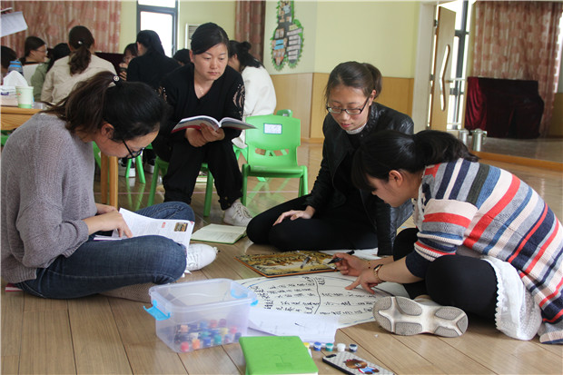 绘本作为儿童早期阅读的新生力量,它的创意出色、表现手法幽默,深受小朋友们的喜爱。绘本教学也越来越受幼儿园重视,老师借助绘本生发课程展开教学,让幼儿在欣赏不同形式、不同载体绘本的同时多元培养各方面能力。2018年4月12日中午,龙幼游戏研究工作室全体成员齐聚音体室,开始了针对“绘本如何打开别样课程视角”进行研讨交流。 活动伊始,主持人龚静老师与全体成员进行了“看图猜成语”的游戏,看一看、猜一猜,老师们在快乐的游戏中正式开始了本次活动。接着老师们根据年龄段分成三组,各看一本绘本,小班3D绘本《今天吃什么?》、中班《海底100层的房子》、大班《来喝水吧》。老师们一边看绘本一边讨论绘本中能生发出哪些适合本年龄段的游戏课程视角,大家各自交流着自己的想法,并及时记录制成海报。激烈的讨论后,各组派代表交流成果,科学、语言、艺术、生活等各个领域都能在绘本中找到相应知识点从而生发相应课程。最后结合大家的研讨,吴紫阳副园长就活动内容以及具体的实践落实作了提升总结,希望老师们能运用好绘本,让绘本更好地服务于课程。 此次工作室活动旨在让成员们善于发现好绘本,并能用课程的视角运用绘本,从而生发好课程,陪伴孩子的成长。 撰稿:汪曙 摄影:汪曙 审核:潘雯雯 |