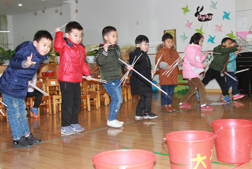 伴着冬日温暖的阳光,新年的大门即将向我们打开;伴着多彩的游戏,龙幼玲珑大班“龙娃迎新年”——民间游戏游园会正在缤纷开启。这里有“方言馆”、“舞龙馆”、“剪纸馆”……2018年1月23日这一天,玲大的孩子们置身于民间游戏和快乐迎新的氛围中,体验着民俗文化,感受着新年气息。 策划篇:集思广益共谋划 新年,作为一个崭新的开始,代表了新的篇章和希望。继前几次“乐享节日”活动的成功开展后,本学期玲大年级组借助以往的成功经验,沿用“游园”的形式,并在此基础上进行创新。各班教师结合孩子的兴趣点,设计了有班级特色的民间游戏方案,最终形成了本次“龙娃迎新年——民间游戏游园会”的完整方案。 准备篇:齐心协力换新貌 本次“龙娃迎新年——民间游戏游园会”活动增加了许多中国元素、民俗文化。因此,在玲大教师和孩子们的精心布置下,整个楼层也充满了新年喜庆的气氛。有的班级是家长与幼儿共同制作的窗花,经过师幼的一番改造,更显古色古香;有的班级制作的一串串鞭炮,让节日的喜庆气氛更加浓厚;有的班级你会看到用红包制作的各式各样的灯笼,年味十足……各班还根据本班特色,布置了有相应游戏场特色的环境,民俗文化和新年特色随处可见。 现场篇:欢天喜地迎新年 在孩子们的翘首期盼下,1月23日上午,各个游戏场正式开放啦!上午9点整,孩子们三五成群,两两结对,手持游戏护照入园,根据个人喜好自主选择游戏场,开始了快乐的民间游戏之旅!民俗美工“剪纸馆”,孩子们体验剪纸的乐趣,感受艺术的魅力所在;“舞龙”场馆中,孩子们真实地舞龙体验,考验着孩子和同伴之间的默契;“大力士”的场馆里更是热火朝天,孩子们两两对面,信心十足,哨声一响,孩子们十足力气,奋力拼搏;孩子们5人一组,团结合作,各个都使出浑身解数,想要一争高下,一阵阵加油呐喊声在“拔河”场馆中此起彼伏;移步“夺冠馆”,孩子们的兴趣更浓了,伴随着“一米一米一,三米三……”的儿歌,孩子们玩起了“抢皇帝”的游戏……个个场馆人头攒动,个个场馆趣味十足,个个场馆笑声不断。 此次活动在孩子们的欢笑声中结束了。如此充满“年味”的民间游戏活动,相信留给孩子的不光是游戏的乐趣,更多的是民间文化的浓浓熏陶。新年即将到来,希望孩子们带着今天的美好回忆,用他们的热情抒写着属于明天的精彩! 撰稿:张忧 摄影:吴紫阳 审核:潘雯雯
