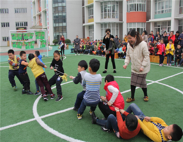 元旦,作为新年的第一天,代表了新的开始和希望。为让幼儿乐享节日,感受成长,12月27日下午,龙虎塘街道中心幼儿园玲珑园区大班年级组开展了“龙腾虎跃”运动会。 开场仪式,嗨翻全场 伴随着铿锵有力的“运动员进行曲”,孩子们手持五颜六色的彩旗和花环,神采奕奕地进行着方阵展示。一路走过,振奋人心的口号此起彼伏,各班向大家展现着班级风采和必胜决心。升旗仪式开始了,四位神气的小小护旗手踏着整齐有力的步伐来到升旗台,伴随着庄严肃穆的国歌,将国旗缓缓升起。随后,来自“鼓号队”社团的孩子们为大家带来了表演,现场掌声不断,孩子们的激情瞬间被点燃了。 个人竞技,赛出精彩 本次运动会与以往不同的是,跳绳、拍球、短跑三项单项同时进行。小观众们可以自主选择观看加油。因此,比赛现场加油声、呐喊声、欢呼声沸腾在整个龙幼操场的上空。看,这边拍球的运动员们找到了又快又稳的好办法——微微蹲下身体,小手轻触小球,一下、两下、三下……每一秒钟都变得如此紧张。那边跳绳的孩子出现失误后不愿放弃,立刻调整姿势继续加入,绳子嗖嗖地穿越而过,节奏逐渐沉稳。参加短跑的孩子们亦是张开双臂奋力奔向终点的裁判,不愿落后一分一秒。赛场是激烈的,但更多的是充斥着欢声笑语,孩子们在比赛中收获了友谊、健康和成长。 团体比赛,奋力拼搏 在声声呐喊助威中,幼儿团体比赛正式开始。首先进行的是“拔河”比赛,只见孩子们两手死死地抓着绳子,随着一声哨响,双方队员个个咬着牙,身子往后仰,用尽全身力气拔。周围的欢呼声、加油声融成一片。当红领巾偏离中线向一边靠近时,呼喊声瞬间响彻操场。拔河比赛刚结束,激烈的足球总决赛立马上演了。小小足球队员们个个身手敏捷,左突右出。而双方的守门员们则警惕地注视着前方,分腿弓背,死死地守住足球门框。赛场上的一个个小小细节,让我们看到了孩子们集体意识的萌发,以及在磨练中不断超越的自我。他们在运动中不仅收获了成绩,更多的是收获了成长。 颁奖仪式,激动人心 激动人心的时刻到了!当主持人宣布获得“金牌”、“铜牌”、“铜牌”以及“团体奖”得主时,小小运动健将们伴随着高昂的进行曲,迈上领奖台,高高举起手中的奖状。那一刻,成功的喜悦和胜利的微笑在孩子们的脸上“定格”,那一刻,我们发现孩子们真的长大了...... 龙虎塘街道中心幼儿园始终秉承着“润泽生命,倾听花开”的办园理念,为孩子们的健康成长提供丰富适宜的环境。运动会在温馨与欢乐的氛围中画上了圆满的句号,但多姿多彩的户外活动从未停止脚步。新的一年即将来临,愿孩子们在活泼有趣的游戏中乐享健康成长的幸福! 撰稿:万丽娜 摄影:各班教师 审核:潘雯雯