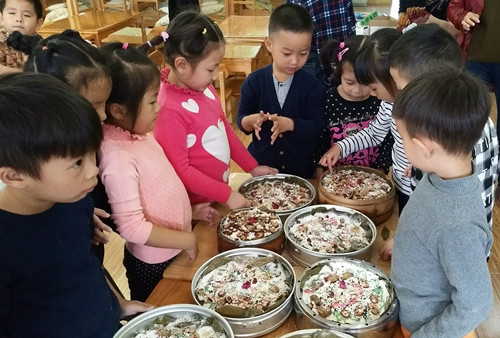 “岁岁重阳,今又重阳,彩云追月,桂花飘香,秋高气爽胜春光。” 中华民族一年一度的传统节日——重阳节就要到了。为了更好地从小培养幼儿尊老爱老的意识,2017年10月26日,龙虎塘街道中心幼儿园玲珑大班年级组开展了“九九重阳节,浓浓敬老情”乐享重阳活动。 敬老我先行 重阳节是我们中华民族的传统节日,尊敬老人是中华民族的传统美德。太阳1班和太阳3班的幼儿开展了“敬老爱老我先行活动”。活动前,班级利用“我想为您做……”调查表了解幼儿最想为爷爷奶奶做的事情。紧接着,孩子们用自己的方式表达着对爷爷奶奶的祝福和爱。“老师你看,这我我送给爷爷的领带”,“老师,冬天到了,我要送给奶奶一条暖和的围巾”,“老师,这是我为婆婆画的一幅画,回去我要帮她捶捶背”……孩子们或剪或画,或思考或交流,每一件小小的礼物,每一句稚嫩的话语背后,无不流露处浓浓的爱。 轻轻告诉你 百善孝为先,在“重阳节”来临之际,培养幼儿爱的情感,应从爱长辈、爱家庭做起。因此,太阳2班和太阳6班开展了“轻轻告诉你”乐享重阳活动,在讲述“爷爷奶奶,我想对您说……”、在手工活动“我的心愿”中为爷爷奶奶送去自己的祝福。同时,我们还与家长沟通,让幼儿在家为爷爷奶奶做一件力所能及的事,如:帮爷爷奶奶摘菜;给他们敲敲腿、捶捶背;给他们端茶送水、拿报纸……幼儿用各种形式表达对爷爷奶奶的关爱,并用绘画形式记录分享。最后,老师将“我了解自己的祖辈”、“我调查爷爷奶奶最喜欢的礼物”、“我知道最想要的祝福”、“我最想对爷爷奶奶说的话”等一系列过程资料进行装订,制作成一本精美的纪念册送给爷爷奶奶。祖辈们拿着这本纪念册,不仅感受到孩子的成长与进步,也体验到了幸福生活的喜悦和祖孙间浓浓的亲情。 重阳美滋滋 农历九月初九是重阳节,人们都会在这个节日里相伴登高望远,吃重阳糕,如果自己动手做一份心意浓浓的重阳糕,那必定会给这个节日增添一份额外的快乐。因此,太阳5班和太阳7班的幼儿开展了“体验重阳习俗,学做重阳糕”活动。本次活动在家长志愿者的示范和指导下拉开帷幕。爷爷奶奶们结合自身经验,详细地向大家介绍了揉粉、加水、点缀等制作过程。紧接着,孩子们以小组为单位动手制作,在相互的帮助下,重阳糕成型了。在等待蒸熟的过程中,孩子们交流着各自的收获和体会。最后,孩子们利用放学时间将蒸好的重阳糕端送给了过往的爷爷奶奶品尝。爷爷奶奶们吃在嘴里,甜在心里,孩子们看着他们脸上洋溢的幸福,孩小脸上也荡漾处出满足、成功的笑容! 最美夕阳红 太阳4班和太阳8班开展了“最美夕阳红”乐享重阳活动。《指南》指出家庭是幼儿园的合作伙伴。因此,我们的活动不仅在幼儿园里开展,还可以延伸到家庭之中。首先,老师们以短信的形式邀请爸爸妈妈的参与,共同寻找爷爷奶奶年轻时的照片,请爷爷奶奶给孩子说说“当年的故事儿”。紧接着,爸爸妈妈和孩子一起制作标签为爷爷奶奶送上最诚挚的祝福。最后,老师将照片和祝福标签制作成展板展示出来。大家在欣赏爷爷奶奶当年英姿飒爽、风华正茂的同时,传递我们对祖辈的关爱。 课程来源生活,生活传承文化。在这个具有教育意义的日子里,我们把孝敬老人的传统美德灌溉到孩子们幼小的心田中,让中华民族敬老爱老的优良传统在新生代的身上得到绵延不断的传承与发扬。 撰稿:张忧 摄影:各班教师 审核:潘雯雯