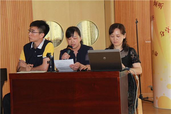 为了改变以往“为总结而总结”的形式主义,改革以往“纯粹事务性总结”的走过场,改观以往“没有功劳也有苦劳”的懒政思想,2017年6月26日上午10点,全体龙幼教职工汇聚在玲珑园区二楼音体室,一起等待“2016—2017学年第二学期条线工作总结答辩会”这一场思辨脑力的盛宴。 本次答辩会分别由我园教科研、教学、后勤三个条线团队组成,同时我园特别邀请了幼教界的专家——银河幼儿园吴亚英园长作为特邀嘉宾进行现场观摩指导。 篇章一:智慧答辩 激情飞扬 条线总结以答辩会的形式出现在大家面前是一次尝试也是一次创新,融合了工作汇报、现场沙龙、民主测评三项活动。条线团队利用5分钟的时间进行ppt汇报,用2分钟的时间针对现场嘉宾给出的问题进行答辩,在反思性总结中直面条线真问题,在答辩式思维中寻找条线新节点。三个团队的答辩共同体经过前期精心准备,利用汇报形式把学期重点工作条理清晰地呈现在大家面前。教科研团队的“坚守润泽情怀,打造教师的精神宇宙”、教学团队的“探寻课程意蕴,润泽儿童心灵”、后勤团队的“悟前行之道,育品质之花”,都让这学期的精彩花絮和重要片段不断涌现。 答辩过程中,各团队能分别对吴园长提出的“科研味道”、“团队蜕变点”、“后勤专业标志”等问题,进行中肯而全面的回答,激起了在场老师的热烈掌声和点赞。整个过程大家精要、精彩、精当地表述,展现了管理团队在行走的路上越来越有判断力和思辨力,给了大家足足的信心和正能量。 篇章二:给力点评 共进共勉 在脑力高速运转之后是大家期待的点评环节。吴亚英园长分别用三个点“向上的力量”、“成长的喜悦”、“干练的作风”对本次条线答辩进行了点评。她结合自身阅历以及龙幼行政团队在本次活动中的表现,对我们的管理条线进行了充分的肯定。吴园长特别对答辩中闪现的亮点闪现、行政团队自信满满的干练作风,大家成事成人中不断形成的价值判断等方面进行了高度的评价,让大家看到了龙幼行政团队成长和成熟的魅力。管理是带着一群人把正确的事情做正确,这同样是我们不断的追求。 篇章三:告白教育 携手同行 最后,本次活动的策划者与主持人高亚媛园长深深感谢了吴亚英园长的参与和点评,她提出:作为教育者,宽要有教育情怀,细要有爱人之心。最后高园长改编了一首《遇见》,表白了龙幼人对教育的理解:“我期待,我们永揣纯澈师爱”、“努力蜕变,倾听彼此花开”、“教育,是最美的期待……”伴随着美妙熟悉的歌声,教育的告白沉浸在每个人的心底。 思辨在继续,教育在前行。在路上,有你有我,我们目标清晰,方向一致,一路奔跑着抒写大美教育!