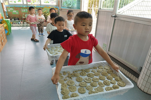 一年一度,粽叶飘香。在夏日的暖风中,端午节又如约而来。为了让孩子们感受端午节的独特习俗,近日,龙虎塘街道中心幼儿园中班年级组开展了“龙娃过端午”的主题活动,让孩子们通过实际操作、亲身体验,进一步了解端午节,体验传统节日的氛围。 镜头一:巧手达人,感受端午 端午节有佩香包、戴五彩绳,编蛋网的习俗,于是,孩子们便在家长、老师的帮助指导下,忙活开了。有的幼儿用资源室的彩色毛线编织成了一根根漂亮的五彩绳。有的幼儿用卡纸、毛线、流苏等做出一只只小巧玲珑的粽子香包。还有的幼儿兴趣盎然地用各种毛线编起了各种网袋。在这过程中,他们相互学习、合作有序,经过大家的努力,孩子们期待的成品一个个陆续诞生了!丰富的活动,让孩子们不忘传统,一起感受着中华民族民俗文化的魅力。 镜头二:做绿豆糕,品味端午 在端午节来临之际,部分班级开展了“制作绿豆糕”活动。为了能更好的完成这次的亲子活动,家长们在活动之前就已经做了精心准备:浸泡绿豆、打磨绿豆粉,进行一次次的试验。为了让孩子们的绿豆糕有特色,用心的家长们还准备了各种各样的磨具,有兔子的、有蝴蝶等。活动中,家长和老师耐心地给孩子讲解制作绿豆糕的材料和方法。接着,就是孩子们大展身手的时候了。只见他们先拿一团绿豆泥放在模具里,用调羹将模具中的绿豆泥压平,然后倒扣在吸油纸上用力一按,一块块造型各异漂亮的绿豆糕就出来了。看着形形色色的绿豆糕,孩子们的成就感十足! 镜头三:趣味龙舟,激情端午 部分班级借助端午节这个契机,开展了“制作龙舟”活动。在制作龙舟之前,幼儿观看了赛龙舟视频,体会团体同心的重要性。活动中,老师为孩子们提供了丰富的材料,让幼儿自主选择,自由设计。通过小组合作、互相帮助,一艘艘龙舟终于成型了。通过制作活动,幼儿学会了团结协作,感受到了浓浓的端午节乐趣。光做龙舟还不够,赛一赛龙舟才更好玩呢!只见幼儿园里的赛龙舟现场,小队员们系上红头巾、手拿船浆,随着一声哨响,孩子们相互合作,一二、一二喊着口号努力向前划。整个现场热情似火,欢呼加油声此起彼伏! 整个活动,孩子们感知端午、品味端午,体会着传统节日的快乐与童趣。端午节的浓郁氛围为孩子们的成长铺垫了强大的传统文化场,让孩子们的快乐看得见,成长看得见! 撰稿:张忧 摄影:各班老师 审核:潘雯雯