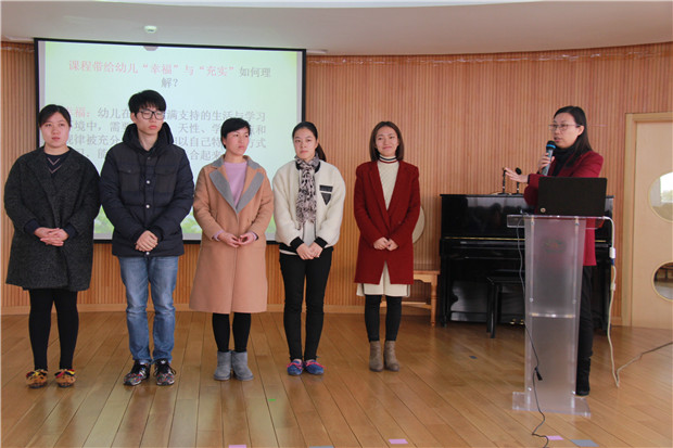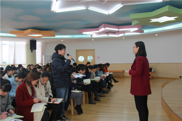 幼儿园课程的意义是什么,在10月工作盘点中,龙幼高亚媛园长带领全体教师深度学习了“为了智慧的生长——幼儿园课程的特质与旨归”一文中的精髓。在共同学习中,大家深刻认识到:只有关注经验建构的课程,才是真正有意义的儿童的课程,幸福的课程。带着这份学习的收获,龙幼的每一位教师努力尝试用课程视角去审视每一件事,开展每一项工作。2016年12月19日中午,我园选取了5位用课程视角做实事的老师,带着他们的所思所悟,与全体教师进行了分享交流。 镜头一:专业解读,彰显课程理念 会议伊始,高园长从幼儿园课程“故事说”谈起,带领大家再次回忆重温了“什么是课程”这个问题。在对话与交流中,全体教师充分认识到:课程带给幼儿的应该是幸福和充实,即让幼儿在一个充满支持的生活与学习环境中,需要、兴趣、天性、学习特点和规律被充分关注,他们以自己特有的方式学习,能将思考与行动结合起来,并且有更多的机会去做具有适度挑战性的、需要思维和情感参与的事。 镜头二:经验分享,展示课程视角 紧接着,范炳程、王佳、蒋晶丹、朱晓玲、胡华这五位老师,分别和大家分享交流了他们基于课程视角下所做的一些事儿:《男孩,我要让你赢一次》、《主题转换间游戏情节的推动》……5位教师用越来越专业化的眼光观察孩子,发现孩子,看懂孩子,在综合课程中适时助推,抓住教育契机生成新的课程,从而让幼儿向更高水平发展。这既是一次展示,又是一次剖析,更是一种引领,龙幼教师用专业武装自己,不断让教育滋润幼儿的心田! 镜头三:话题讨论,传递课程意识 听了五位老师的课程故事,在座的老师感触颇多。大家围绕“综合课程和生成课程的关系”以及“如何把握课程计划与灵活”这两个话题展开了讨论。“从幼儿中来,到幼儿中去”、“对生成的内容要优价值判断”、“牢记课程是幼儿的,活动是幼儿的,幼儿是学习的主体”……智慧的碰撞与传递,让大家对于幼儿园课程有了新的认识和思考。 作为一名专业的幼儿教师,让我们充分发挥自身作用,在今后的工作中,看得越来越真,做得越来越实,让孩子越来越幸福充实,从而让教育有生长的意蕴! 撰稿:汪曙 摄影:潘雯雯 审核:潘雯雯