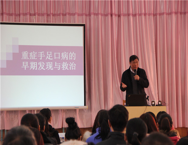 孩子的健康牵动着千家万户父母的心。为了增强家长的保健意识,提高家长预防幼儿高热惊厥、手足口病等疾病的能力,12月1日下午三点,龙虎塘中心幼儿园特邀常州市儿童医院钱金强院长走进盘龙园区,为盘龙园区小班年级组的家长朋友们进行了一场保健知识讲座。 下午3点,各位家长朋友们应邀来到盘龙园区音体室,经过现场签到,有序就座后,讲座正式开始。钱金强院长临床经验非常丰富,特别擅长儿科危重症抢救和呼吸系统疾病诊治。而高热惊厥和手足口病都是幼儿期比较常见的疾病,因为它们的危害性比较大,常常会引起家长们的担忧和恐慌。因此,钱金强院长利用浅显易懂,图文并茂的形式,向在座的每一位家长,说明了这两种病因引发的原因和特点,并运用医疗过程中遇到的一些临床病例,向大家述说了出现这些症状和情况时,家长们可以如何预防和辨别,以及一些应急的处理方法。针对手足口病,钱院长也在讲座中详细向家长们说明了手足口病高发期的注意事项等。讲座结束后,很多家长就自己一些不懂的地方和钱院长进行了充分的交流,受益匪浅。 本次讲座内容扫除了大家护理幼儿过程中的一些保健盲区,从而能够更好地帮助家长从容应对这些常见现象,为孩子的童年守护一片蓝天,为每一个家庭注入一份保障。而龙幼的后勤保健一直和专业对接,用“请进来”的方式把一些保专业保健知识传送到千家万户,为孩子的成长保驾护航,愿孩子们永远被健康和快乐包围! 撰稿:钱赟 摄影:季金亚 审核:潘雯雯