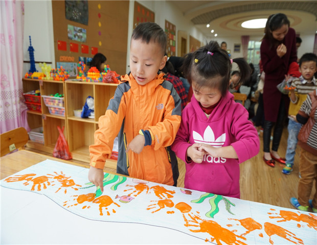 家长开放日活动一直是我园注重的一项家园合作活动,目的是让家长更多地了解幼儿在园生活、学习情况,增进幼儿园、家长之间的联系与沟通。通过开展家长开放日活动,搭建“幼儿园—孩子—家长”共育的桥梁,更好地达到教育目的。2016年10月28日上午,龙虎塘中心幼儿园三园区中班年级组举行了本学期的家长开放日活动。 镜头一:主题游戏氛围浓 本次家长开放日,有的班级举行了丰富多彩的和主题相关的亲子活动。看,主题性游戏活动“秋天的公园”中,好玩的游戏把孩子们带进了学习、探索的活动氛围中,师幼之间的朋友式互动和孩子之间的生生互动,给家长们留下了深刻的印象,家长们快乐的笑声是给孩子、老师最大的肯定。 镜头二:体育游戏携手中 体育游戏是幼儿最喜欢的游戏之一,这不,有的班级开展的亲子体育游戏正在操场上如火如荼地开展着。体育游戏开始前,爸爸妈妈们在孩子的带领下,共同学习了律动《水果王国》,感受了亲子互动的魅力。游戏中,幼儿和家长密切配合、齐心协力参与比赛,欢乐的笑声此起彼伏,在享受取得胜利喜悦的同时,也体验了亲子互动的乐趣,拉近了亲子之间的距离。 镜头三:秋季美味来品尝 秋天也是丰收的季节。有的班级邀请家长和小朋友一起进行了美食总动员。活动中,在爸爸妈妈的指导下,孩子们制作出了美味的水果杯蛋糕、水果蛋挞、甜甜圈、水果沙拉、粗粮糕点、鲜榨果汁,还有好吃又好看的水果拼盘……这些美食对孩子来说不仅是品尝,更是一种成就,一种骄傲,相信他们心里一定会很自豪地说:“这些我和我的爸爸、妈妈一起做的,太棒啦!” 镜头四:创意服装T台秀 时光飞逝,一眨眼我们就投入了秋姑娘的怀抱里。秋风飒爽,早晚多了一丝丝的凉意,穿在身上的衣服也有了变化。为了让孩子们更直接的感受到秋天的温度变化,我们利用秋天特有的落叶以及一些废旧材料,让孩子们和家长一起设计一套属于秋天的服装。在设计、制作、走秀的过程中丰富孩子们的体验。活动不仅锻炼了孩子们的动手能力,还在很大程度上拉近了亲子之间的距离。 短短一上午,每个班的亲子活动都趣味十足,深受幼儿和家长的喜爱。最让孩子们高兴的是能和爸爸妈妈一起做游戏,而平时忙于工作的家长们也体会到游戏对孩子健康和全面发展的重要。“家园如同一车两轮,只有同向运转,才能共同促进幼儿的发展。”让我们大手拉小手,成长心连心,为孩子的成长而共同努力!