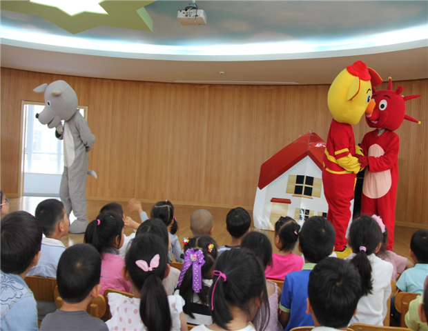 童话,是真善美的化身;童话,是你我他童年缤纷梦想的展现。 2016年6月12日 上午,常州亚细亚影城的童话剧演员们走进龙幼(玲珑园区),为所有的孩子们带来了精彩的童话剧演出。 伴着一曲曲欢快的音乐,笨笨猪、丑丑猪、美美猪等角色依次登场,上演了一出《新三只小猪》的故事。 演员们身着卡通的演出服,忘情地表演着,孩子们的目光深深地被吸引了过去。《新三只小猪》以三只小猪盖房为背景,而大灰狼狡猾多变想吃掉三只小猪,精彩的剧情让孩子们时而紧张、时而兴奋、时而欢呼。最后,三只小猪联合小动物和现场的小朋友一起打倒了大灰狼,将活动现场推向了高潮。演出虽然只有短短的半小时,但那精彩的一幕幕不仅点燃了孩子们无限的热情,更让孩子们学会了团结力量无穷大的道理。 通过此次观看童话剧演出,不仅丰富了孩子的幼儿园生活,开阔孩子的视野,最重要的是领略了童话剧的魅力。孩子天生爱童话,让我们用童话与孩子心灵相通吧! |