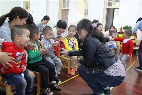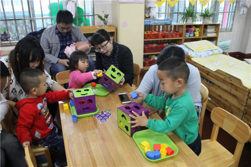 5月21日上午,龙虎塘中心幼儿园龙贝贝早教园的第五次活动开始咯!来自社区的9对宝宝和爸爸妈妈们,在盘龙园区教室里开展了亲子园活动——快乐泥塑。 镜头一:能干宝贝送积木 在“亲亲热热”环节中,宝贝们相互作自我介绍,童声童趣让活动氛围慢慢升温。紧接着,在老师的带领下,孩子尝试把各种形状的积木“送回家”。他们努力地分辨各种形状的积木,经过了一次又一次的尝试,终于成功啦!不仅如此,游戏最后,孩子们还细心地把积木都收拾整理好放回原来的位置,真是棒极了! 镜头二:唱唱跳跳演小鸭 接下来,宝贝们跟着老师边学唱歌边表演指偶操《5只小鸭》,爸爸妈妈也忍不住和宝贝们互动起来。他们温暖的大手表演“鸭妈妈”,宝贝们稚嫩的小手表演“鸭宝宝”,摆出了各种各样有趣的姿势,脸上露出灿烂的笑容。快乐的游戏不仅让宝贝们和爸爸妈妈之间充分互动,也给宝贝们一个机会,培养落落大方大胆展示自己的勇气。 镜头三:捏捏揉揉做游戏 当色彩鲜艳、有趣好玩的橡皮泥摆到宝贝们面前时,宝贝们一个个兴奋地一拥而上。大家都坐在桌子面前专心地起自己喜欢的图案,脸上洋溢着开心快乐的光芒。在这温馨而欢乐的气氛中,孩子们看着自己完成的作品,纷纷和爸爸妈妈分享成功的喜悦! 本次早教活动,家长与宝贝们欢聚一堂,欢声笑语飘荡在每一个角落,现场洋溢着温馨、愉悦的气氛。本次活动的展开,增进了宝宝与家长的亲密关系,又培养了宝宝们的综合能力,对宝宝智力的成长发育具有积极意义。 |