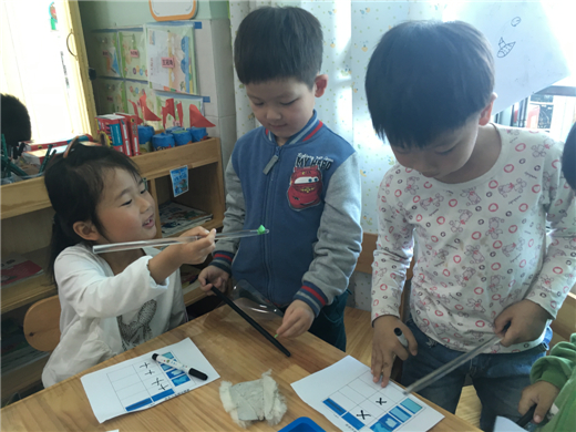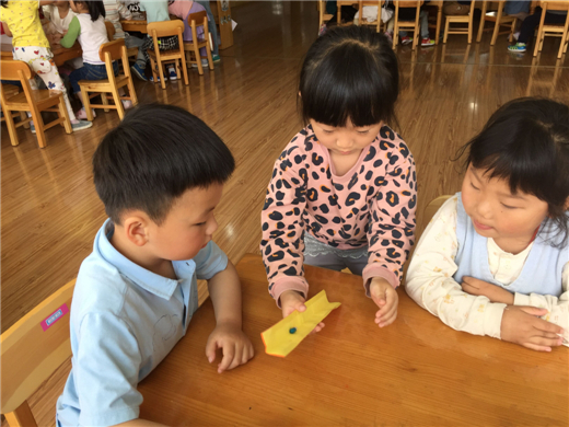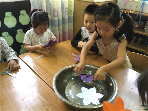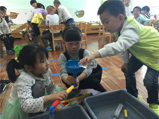 进入主题《我们身边的科学》后,各种各样的科学现象吸引了孩子们的目光,孩子们对于科学小实验产生了浓厚的兴趣。基于主题核心目标“对生活中的科学现象感兴趣,认识到自己的身边处处有科学”,近日,龙幼(三园区)中班年级组围绕主题,分别开展了一系列的主题性游戏。 镜头一:科学实验站,动手来探索 为了彻底满足孩子们对于身边科学的好奇心,尊重他们对科学的兴趣,让他们在玩的过程中去发现秘密,玲珑月亮3班、月亮4班和腾龙月亮2班生成了主题性游戏:科学实验站。活动中,孩子们围绕各类科学小实验展开游戏。实验:睡莲花开、翻跟斗的小胶囊以及装电池等,无不调动着孩子们的好奇神经。实验中,孩子们积极参与科学探索,通过观察与探究,进一步感知了生活中的各种奇妙的科学现象,同时感受到了动手实验的快乐。 镜头二:泡泡吹起来,乐享在其中 无论是大朋友,还是小朋友,都很喜欢玩泡泡,不管是用嘴吹出来的还是用枪打出来的,都能开心地玩半天。玲珑月亮5班、腾龙月亮3班围绕“吹泡泡”,开展了主题性游戏“自制泡泡水”。 游戏中,孩子们使用生活中常见的洗衣粉、洗洁精、洗发水、沐浴露等进行调制。在调制的过程中,孩子们体验到了失败,但失败过后,孩子们不断调整。最后,他们成功吹出了一串串的泡泡,脸上洋溢出成功的喜悦。 镜头三:欢乐水世界,你我齐参与 孩子喜欢玩水,似乎是他们的天性。为了让孩子在玩的过程中去发现关于水的秘密,玲珑月亮2班、盘龙月亮4班生成了主题性游戏:好玩的水。孩子们通过一系列玩水的游戏:运水乐、溶解的秘密、制作双层水等,不仅感知到了“水”流动性特点,同时积累关于沉浮、溶解、纸的吸水性等多种和水有关的科学现象。“好玩的水”使孩子在开心玩耍中学到了更多的知识,感受动手实验的快乐。 镜头四:光影藏秘密,奥秘何其多 创设情境让孩子们置身于充满神秘感和挑战性的科学游戏中,使孩子们对科学现象产生了强烈的探究愿望是本次主题性游戏的主旨。玲珑月亮1班、盘龙月亮1班准备了充足的游戏材料,创设情境,开展了主题性游戏“神奇的光影”,组织了与之相关的光影探秘、有趣的影子、箱子里的秘密等六个科学小实验。孩子们在自己的操作中,不断探索,在互帮互助的过程中不仅获得了交流的技能、虚心学习的本领、积累了丰富的实践经验、更是体会到了探索带来的快乐! 此次科学系列的主题性游戏活动,让孩子们在动手动脑的过程中发展了细致的观察力和对科学探索的兴趣,让幼儿真正成为活动的主体。龙幼将继续以重科学品质为行动依据,培养乐观察、乐探索、乐思考、乐表达的龙幼娃!