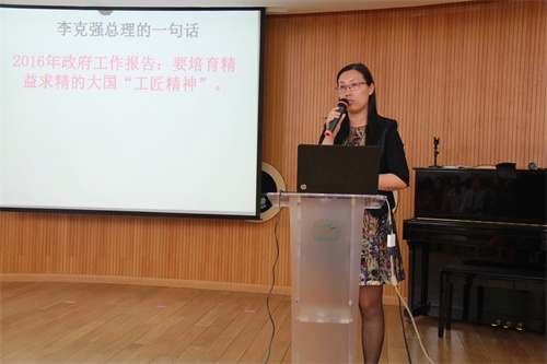 ——四月工作盘点 春雨之后,芳草无边。在这春的季节里,充满希望,充满繁花。2016年5月9日下午,龙虎塘中心幼儿园全体教职员工齐聚龙幼音体室,共同分享美丽四月带来的芳香怡人。 工作盘点 :望眼绿色春之华 精益求精一直以来是龙幼人做事的追求。芬芳的四月,有多少工作带着这份执着?今天,在主持人张静老师的带领下,全体教职员工在4月的盘点中细细体味了这种精神。活动中,张静老师从队伍建设、教师成长、课程建设以及后勤保障四个方面,与我们一起回顾了龙幼人在四月里扎实走过的每一天,充分展示了这个春天我们所采撷的嫩绿:课程建设、党建活动、行政会议,熔铸成长的底蕴;园本培训、课程规划、快乐游戏,读懂了教师内驱的需要;小班的主题性游戏、中班的我与春天同行、大班的我与小学零距离,凸显了教育的意蕴;妇保所的幼儿体检、区防侵犯讲座、园所的防震演练,细致关注点滴细节。一路绿色,一路芳香,我们在前行中收获满满。 最美员工:情深洋溢春之芳 万绿从中一点红,那红便是龙幼散发出来的方向。这芳香浸润你我,让每个人都快乐、成长。四月的最美员工巡礼,汇集了龙幼员工中最美的花朵。其中有善于观察的观察星、用心思考的故事星、用心沟通的博客星、默默成长的坚持星、勤劳肯干的保育员团队、不同年段的教师代表、以及四月党员示范岗的优秀党员,还有在市区级比赛中取得好成绩的老师。他们用自己的努力描绘着一幅幅春的画卷。相信在每一次龙幼的最美员工巡礼中,都能找到最美的自己。 厚实积淀:“工匠精神”春之韵 在今天的活动的最后一个环节,话筒传递给了高亚媛园长。高园长带领全体教职员工学习了李克强总理的一句话,即2016年政府工作报告中说到的,要培育精益求精的大国“工匠精神”。何为“工匠精神”?“工匠精神”如何融合在我园的教育理念之中?高园长从说文解字中“工匠”的含义,讲到真正的工匠所具备的精神,再到教师中具有的“工匠”精神,让我们认识到,教师的“工匠精神”之体现,在于拥有一颗纯粹而自由的心,拥有一颗创造而极致的心,拥有一颗宁静而有情的心。 今天的月盘点工作,既是一次全面回顾,更是龙幼人的精神大餐。课程游戏化的改革之路可能很长,我们只能“徐图缓进”。但是,当你用心践行“工匠精神”,在矛盾中寻求更多的认同,就是拥有最理想的奋斗状态,成就最美好的未来。 |