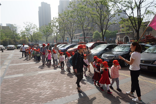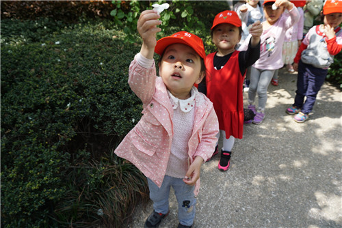 春光明媚,春意盎然。在这美丽的季节里,大自然是我们最广阔的教室,赋予我们取之不尽的源泉。随着主题活动《春天真美丽》的深入开展,2016年4月15日,龙幼玲珑小班年级组星星6班和星星8班开展了主题性游戏之“春天在哪里”社会实践活动,让孩子们跟随着春天的脚步,踏上了“探春”的旅途。 为了确保活动的顺利开展,全体幼儿的出行安全,小班年级组的老师们提前周密部署和精心安排,制订了详细的活动方案、安全应急预案,并招募家长志愿者们参与其中。在老师的引导下,孩子们认识了各种各样树木和花草的名称:高大茂密的梧桐树、点缀着星星点点的桂花树、身姿婀娜的柳树、一串串吐着花蕊的一串红、颜色各异的绣球花……自然清新的大自然带给幼儿别样的视觉感受,老师们感受到了孩子们对大自然强烈的好奇心和探究欲望。在带给孩子春天气息的同时,给了孩子们一个发现快乐的体验之旅,真正做到了寓教于乐。
