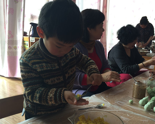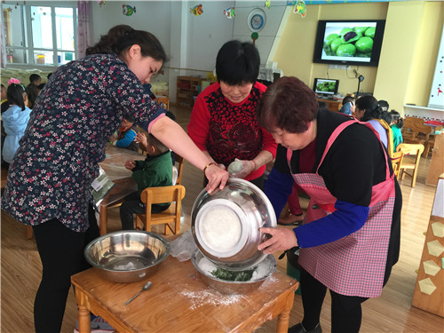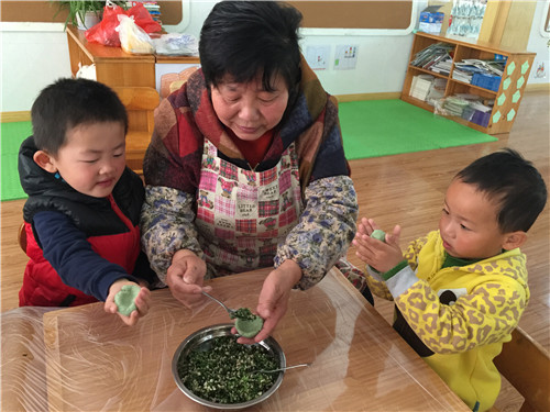 四月正值春季特征明显的时候,怎样让孩子加深对春天的认识呢?吃,是孩子最直接的感知通道。4月12日,玲珑星星4班和星星6班的老师、家长和孩子们一起开展了“做青团”的家长助教活动,让孩子们通过动手学做、一起品尝,感受春天的季节特征。在活动之前,老师和奶奶们可是做足了准备。他们提前准备好了各种馅料,有豆沙馅、油酥馅等。到了现场制作时间,孩子们一个个挽起袖子,跃跃欲试。瞧,孩子们在奶奶的指导下,取少许面团用两只小手慢慢地搓圆,再在掌心压成小饼,包入馅料,搓成小球状。经过一番努力,一个个青团包裹着孩子们喜悦呈现在眼前。孩子们敢于尝试,积极参与的状态也获得了奶奶们和老师们的一致点赞!下午点心时间,孩子们品尝到了自己亲手参与制作的美味青团。他们吃着、笑着,品尝着自己的劳动成果,比吃了任何美食都要开心!