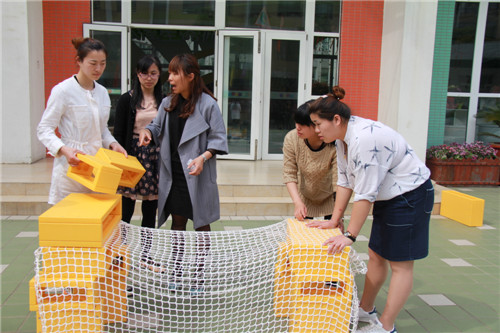 为更好地促进幼儿的全面发展,近期,龙虎塘中心幼儿园再次配备了“亿童”户外游戏活动材料。我园为了让老师更好地了解此材料,以便在后期活动中有目的地进行观察与指导,2016年4月15日中午,龙幼特邀亿童早期装备研究院的许有芳老师来园,为大家进行了主题为《创设自由天地,开展户外游戏》的专题培训。 本次活动分两部分进行。首先,许老师针对户外游戏对幼儿发展的价值、户外游戏的特性、户外游戏的基本类型、户外游戏如何逐步发展以及户外游戏材料如何投放等方面,进行了全面而详细的讲解。为了方便老师们认识,她准备了多个幼儿园幼儿实际操作的案例,利用图文结合的形式,让老师们直观了解了各种幼儿活动过程,从而使老师们更加熟悉亿童户外游戏活动材料的特点。在这过程中,许老师还同大家一起探讨户外游戏的空间、场地、时间及注意事项等诸多问题,让大家明白了应该如何合理安排幼儿的户外游戏活动,并逐步提升幼儿的各种能力,促进整合发展。 紧接着,许老师带领全体老师来到了一楼操场,通过实践操作来巩固刚刚所学的知识。结合“亿童户外游戏区”的材料,各年级组的教师们进行了三轮PK赛:表演类、建构类、运动类三个主题游戏。老师们一边学习一边实践操作,亲自搭建、体验、创造材料的玩法,实现了对材料的熟悉和运用。在这过程中,老师们对于户外游戏活动材料爱不释手,相信这些材料后期也能够给我们的孩子带来全新的体验和乐趣。 通过此次培训,老师们在亲身参与的互动过程中获得了有关户外游戏活动的直观感受,同时对幼儿户外游戏活动的组织与实施有了更加明确的目标和科学理论指导。亿童活动材料的配备和使用,也将为我园的幼儿户外游戏开启新的研究热潮,使孩子们的幼儿园生活更加丰富多彩! |