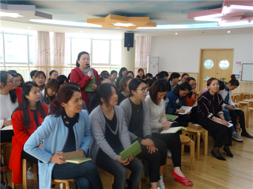 基于“教师真问题”与“草根亮特长”的有效对接,为进一步落实“分层培训”实效,2016年4月11日下午,龙幼全体教师齐聚玲珑多功能室和会议室,开展了2016年度龙幼“大家”谈第一讲活动。 分层培训早谋划,专业发展有实效 为了让有特长的龙幼“大家”们走上草根专家讲台施展才华,也给教师提供最适切的培训需求,达到教师与学校同发展的双赢效益,学校提前发放调查表,追随着教师们的真需求以及前期调查表统计结果,催生了本次园本培训活动。本次活动同期开设两个培训场,2015年新进的新教师进入“家长工作经验分享会”会场,其余教师进入“观察记录专题交流会”会场, 40岁以上的教师们则自主选择培训会场。 家长工作指妙招,前行路上相扶持 《纲要》中指出:家庭是幼儿园重要的合作伙伴,应本着尊重、平等、合作的原则,争取家长的理解、支持和主动参与,并积极支持、帮助家长提高教育能力。而刚上路的新教师,会出现工作上的种种不适,甚至会感到力不从心,特别是对待家长工作,如何取得家长的信任,得到家长的接纳与认可,积极配合新教师的教育教学工作,这些都在考验着我们的新教师们。顾静竹老师是我园一位处理家长工作有丰富经验的老教师。在活动前她先以游戏《有多少个正方形》进行热身,接着她结合平时工作中积累的经验对新教师群体们进行了“家长工作妙招分享”的草根专题讲座。她围绕“新教师家长沟通四个攻略”进行真实案例妙招分享,让新教师们纷纷感慨受益良多。在听完四个攻略之后,新教师们现场提出自己在班级管理与家长工作中的困惑,有经验的老教师们纷纷毫无保留地共享了自己的智慧。最后,吴紫阳副园长给新教师们提出了意见和建议:幼儿园的工作非常琐碎和细致,但是只要新教师们处处留心、事事留意,多观察、多向有经验的老师学习,相信一定会有很大的收获和进步! 观察记录有方法,教育教学多留心 在教育的过程中,观察并记录儿童的行为逐渐成为了教师的一项重要技能。在游戏“优点大轰炸”暖场后,张丽老师围绕“走近观察记录”展开了专题讲座。她从明确观察记录的意义到习得观察记录的技巧,张老师用案例式的讲述,让教师们注重最高质量的观察,从而保证教育活动的适宜性和有效性。接着,张老师围绕“观察的方法”重点讲述,向老师们推荐了四种观察方法,并总结了每一种观察方法的优缺点,让教师们更直观、清晰的知道以后在写观察记录的时候该采用哪一种观察记录方式。最后,主持人进行现场提问:“今天介绍的观察方法给你印象最深刻的是哪一种?”、“在以后的观察记录中,你打算有何新的尝试?”大家纷纷表示,在今后的工作中要做一名目标明确的观察者。王惠副园长在总结时说到:本次活动是龙幼草根明星“大家谈”的第一讲,希望未来会出现更多的“大家”。 本次园本培训活动直击全体教师们最真实的需要,贴合着教师们的成长与发展,分层培训也是2016年龙幼园本培训迈出的第一步,希望在今后会出现越来越多的“草根明星”,让“大家”在龙幼这个大家庭中共同进步、不断成长!