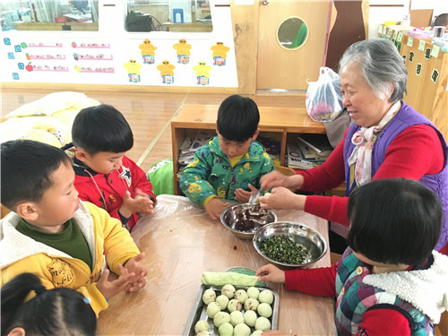 在活动之前,老师和奶奶们可是做足了准备,提前准备好了各种馅料,有豆沙馅、菜肉馅、芝麻馅、油酥馅等。到了现场制作时间,孩子们一个个挽起袖子,跃跃欲试。奶奶们跟孩子们耐心讲解制作方法,如何加水、搅拌、和面、放馅,怎样洗马兰、拌调料。一个个小小的人儿听得特别仔细,都想大显身手呢!