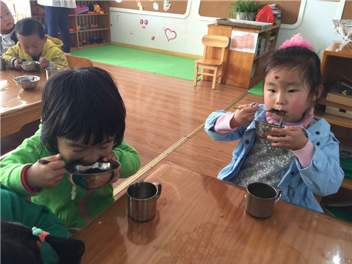活动中,孩子们品尝到了亲手参与制作的美味青团和马兰,都说自己做的最好吃。同时,他们还懂得分享,将自己亲手制作的青团和凉拌马兰,拿去与别的班级的朋友们一起品尝呢!孩子们吃着、笑着,品尝着自己的劳动成果,比吃了任何美食都要开心!