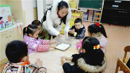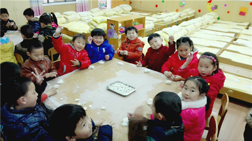 ——“乐享节日”活动课程之“元宵节”系列活动(腾龙中班) 天上星光灿烂,人间灯火璀璨;碗里元宵点点,萌娃喜迎佳节。2016年2月22日,开学第一天,我们就迎来了一年一度的中国传统佳节——元宵节。为了让大家感受到元宵节的欢乐、了解元宵节的风俗习惯等,龙幼腾龙中班的小朋友和老师们,共同举行了“欢天喜地闹元宵”的系列活动。 精彩镜头一:快乐搓元宵,欢乐闹佳节 “身子雪白细腻,心中却甜如蜜,白沙滩上打滚,赤豆河中沐浴。”孩子们兴高采烈地猜起谜语,更为今天的搓元宵活动而兴奋不已。他们洗净双手,卷起衣袖,在老师的指导下,尝试着和面、搓元宵,认真地将切好的面团放在手心,揉啊,揉啊,不一会儿,一个个圆溜溜的元宵就制作完成了。春寒料峭,虽然窗外小雨淅沥沥地下着,但本次活动却带来了缕缕温暖,教室里孩子们银铃般的欢笑声,响彻龙幼,驱走春寒。 精彩镜头二:品尝元宵味,美味来分享 下午,食堂的叔叔阿姨把孩子们亲手制作的元宵汤圆煮熟后,分到每一个班级,孩子们吃着自己的劳动成果,也是格外的香甜,每个人的脸上都洋溢着开心、幸福的笑容,边吃还边猜想着是否能吃到自己做的元宵呢?甜甜的元宵中,也充满了老师对孩子们新一年的美好期望。 精彩镜头三:亲子花灯展,精彩享不停 寒假期间,孩子们就在家人的陪伴下,精心制作了形态各异的花灯。今天,孩子们欢天喜地地带着这些花灯来到幼儿园。这些灯笼的创意都出自于孩子和家长的奇思妙想,很多灯笼还充分体现了废物利用这一环保观念。一个个纸盒塑料罐,一张张广告纸,一片片果皮,在他们灵巧双手的设计下,制作出了一盏盏造型优美、绚丽多彩的元宵花灯:漂亮的荷花灯、古色古香的宫灯、象征吉祥的如意灯、还有憨态可掬的小猴灯、小兔灯……一盏盏颇具特色的花灯将整条走廊装扮成了灯的海洋。下午,各班幼儿在老师的精心组织下,共同来看花灯、赏花灯。想不想知道哪个花灯最受大家喜爱呀?那就赶紧和我们中班小朋友一起来投票吧! 本次“乐享节日”活动课程不仅让孩子在实践中加深对传统节日“元宵节”的认识,激发了幼儿热爱民族文化的情感,也让我们的孩子深深感受到了中国传统节日所带来的快乐及其所蕴含着的浓郁民族文化。在这美好的节日里,我们更祝愿大家的生活就像元宵一样甜甜美美、圆圆满满,一起展望2016年更加美好的生活!