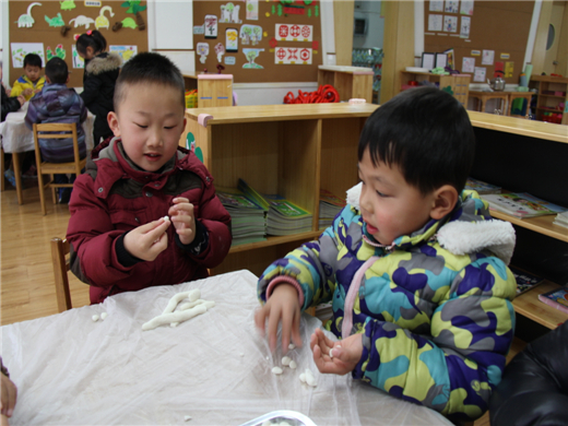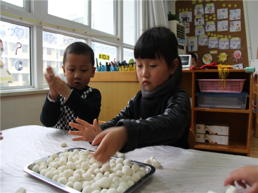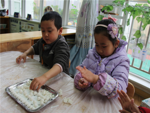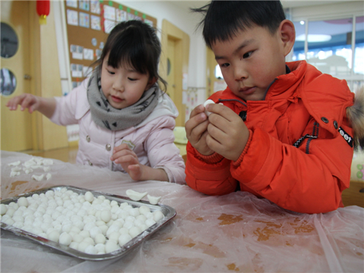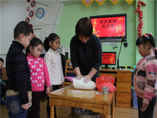 新春的鞭炮声仿佛还在耳边,短暂的寒假已经结束。今天是开学第一天,恰逢元宵佳节,为了让幼儿园里的孩子们感受到元宵节的“中国味”,龙虎塘中心幼儿园玲珑园区中班年级组将元宵佳节融入了课程的元素,在这一天中,孩子们的心里满满的都是幸福与满足。 元宵佳节吃元宵是我们中国的一种传统习俗,吃元宵也寓意着新的一年快快乐乐,团团圆圆。月亮2班、月亮4班和月亮5班的孩子们,在老师的指导下,大家洗净小手,立刻兴奋地开始搓起了元宵。搓、捏、按、团,一块块白白的糯米面很快就变成了一颗颗诱人的小元宵。 “老师,你看我做的好不好?”、“哇!搓元宵好好玩!”……大家做得不亦乐乎。看着一盘盘劳动成果,每个人的脸上都充满了成功的喜悦。在动手搓元宵的过程中,孩子们不仅感受到了节日的快乐,同时也增强了对中国传统文化的认识和了解,更对新的一年有了一个好的期许! 镜头二:元宵大家品 甜蜜庆元宵 孩子们搓好的元宵去哪儿了呢?原来呀,孩子们早就把元宵送到了食堂,请食堂的叔叔阿姨们协助我们把元宵烧好。下午孩子们起床后,他们们就品尝到了自己搓的元宵。吃在嘴里,甜在心里,每个人的脸上都洋溢着开心、幸福的笑容,在喜悦祥和的气氛中感受到民族传统文化的魅力。 镜头三:亲子花灯展,最美大家评 开学第一天恰逢元宵佳节,早在假期内,中班的教师们就已经提前部署,让家长和孩子们利用假期在家中一起亲子制作花灯。家长和孩子们兴致高涨,来园报到当天,就带来了荷花灯、猴子灯、红包灯等等一盏盏自制花灯。于是,老师们将亲子制作的花灯布置在二楼天井中,幼儿园摇身一变,变成了小型花灯会。元宵节当天下午,孩子们行走在二楼的天井中,一边赏灯,一边在记录表上记录下自己最喜欢的花灯。在本次花灯展中,以幼儿为主体,共评选出了10盏“最美花灯”。 本次活动的开展,不仅让孩子在实践中加深了对我国传统节日“元宵节”的认识,了解中国传统节日中所蕴含着的浓郁民族文化,也让孩子深深地感受到了中国传统节日所带来的快乐。让我们一起努力,为孩子打造“自由自主、乐智乐心”乐享节日活动课程,一起期待着、成长着……