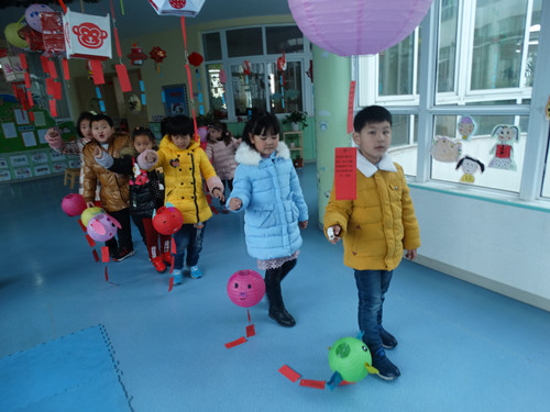 正月十五闹元宵。传统节日是习俗的延续和文化的传承,龙幼玲珑园区大班年级组的老师们经过前期的策划和准备,2月22日,大班年级组开学第一天的“赏花灯、猜灯谜”亲子活动就热热闹闹地开展起来啦! 统筹规划创意新,花样灯谜趣多多 乐享节日课程作为我园的特色课程,老师们都在思考着每一个传统节日对孩子们的影响以及特色节日自身蕴含的文化价值。结合大班孩子的年龄特点,从场地的布置,灯谜的挑选和设置,活动规则的制定,老师们都做了详细的计划。思考在前,行动在后,老师们都期待着精彩活动给孩子们带来成长的欢乐! 自制花灯模样巧,花灯连廊迎元宵 报到当天,家长和孩子们带来了各种各样模样俊俏的花灯。在这个寒假中,他们在家中集合全家人的智慧,利用各种材料:有的利用废弃的塑料瓶,有的利用木棍、彩纸,开始了花灯制作。在亲子互助合作下,一个个花灯跃然眼前,尽情展示着每一个家庭的独具匠心。老师们则把这些花灯有序地张挂在了整个楼层,丰富多彩的花灯连廊,气势非凡,孩子们在花灯下走过,欣赏着各种各样美丽的花灯,流连忘返,百看不厌,元宵节的热闹气氛也呼之欲出,这无不是一种文化的熏陶和渲染! 欢欢喜喜猜灯谜 激趣礼品玩不停 开学第一天下午三点,家长们如约前来,牵着孩子们的手,流连在整个连廊,欣赏着各种花灯的同时开心地猜着灯谜。孩子们对灯谜的喜爱一览无余,大家陶醉在猜灯谜的趣味中。每当一猜中,他们便要欣喜好久,他们猜出这个又猜那个,都想猜得越多越好。当他们手中拿着猜出的灯谜,到班级兑奖处对出答案,得到一个个小奖品时,那份开心和满足绘就了元宵节的缩影,定格在了孩子的童年记忆中! 乐享节日课程让每一个节日都生动展开,让龙幼的孩子们在传统文化中体味着童年,体味着别样的成长!新的一年,新的期望,相信在这样的乐享节日氛围中,孩子们的明天更美好!