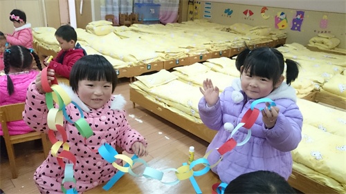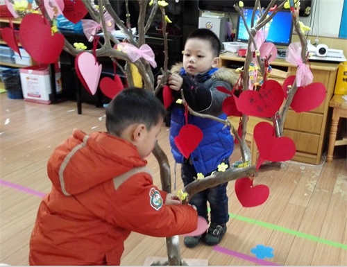 ——“乐享节日”活动课程之小班年级组“元旦”系列活动(腾龙园区) 忙碌的2015马上就要过去了,崭新的2016年就要来临。在元旦佳节即将来临之际,腾龙园区小班年级组于2015年12月30日至31日,分别开展了“庆元旦”系列活动,让孩子们在感受元旦到来的喜悦之时,对新的一年充满憧憬。 萌娃向前冲,送“福”你我他 寒冷的冬天似乎并不能掩盖孩子们运动的热情。瞧,星星1班的孩子们争先恐后越过各种障碍,奔向终点。到底什么在吸引着孩子们呢?原来,我们的树上挂着各种新年礼物。有红灯笼、福字,还有漂亮的中国结呢!孩子们不怕寒冷,勇敢地向前冲,摘取他们想要的礼物。这个礼物可不仅仅是为自己争取的哦,原来孩子们想到:新的一年就要到了,要让所有人一起分享元旦的快乐。于是他们将自己运动获得的成果和所有人分享。瞧,有的小朋友将福字送给中大班的哥哥姐姐,让他们贴在教室的门口,喜气洋洋;有的小朋友将对联送给门卫爷爷奶奶,祝福他们在新的一年里身体健康;还有的小朋友将中国结送给了园长妈妈,祝福她永远和孩子们一样快乐……幸福总是来的那么突然,那是因为孩子们一直在你身边。 娃娃做彩链,共庆元旦节 元旦就要到了,星星3班的小朋友们是怎样庆祝的呢?瞧,他们想用自己的巧手来装扮教室。所以每个孩子都行动起来。抬眼望去,你会看到这样的情景:有的孩子专心致志地在做五彩链,神情很认真;有的孩子在相互帮忙,共同完成一件作品;还有的孩子协助老师将彩链布置在教室中,让节日的氛围变得更加浓厚。一切准备就绪,孩子们开始了自编自演的庆祝活动…… 大手牵小手,元旦乐翻天 作为大班的哥哥姐姐,每一次活动他们都会第一时间想到小班的弟弟妹妹。这不,元旦要到了,太阳1班的小朋友来到星星2班,和他们一起同台演出,共庆元旦。看着大班的哥哥姐姐自己做主持人,做小演员,小班的弟弟妹妹好羡慕啊!他们一个个都坐得端端正正,欣赏着哥哥姐姐带来的每个节目。有的小朋友摩拳擦掌,也想去表演节目给哥哥姐姐看。于是,宝宝们都将自己准备好的节目表演出来,立刻得到哥哥姐姐的赞扬与肯定。教室里的暖意融融,映出孩子们开心的笑脸。 爸妈送祝福,亲情暖新年 新的一年就要到了,怎么少得了我们爸爸妈妈的祝福呢?星星4班的老师们为家长准备了各色的祝福卡,让爸爸妈妈将自己对孩子的祝福写在上面。当老师们对着孩子读着爸爸妈妈的话,孩子们都聚精会神地听着。很多孩子都拿着自己父母写的祝福卡和别人不断介绍:“瞧,我爸爸妈妈希望我……”。最后,孩子们将父母写好的祝福卡贴在了树上,让满树的心愿伫立在风中,一起迎接新的一年的到来。 元旦,万物更新。愿新一年的到来,为我们带来更多的希望,让孩子们的生活更加多姿多彩。 |