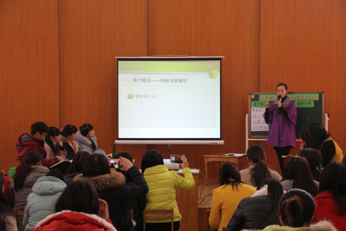 ——龙虎塘中心幼儿园教学开放日活动 为了促进教学及游戏的发展,探讨课程游戏化的实施,2015年12月3日下午,龙虎塘中心幼儿园汇聚新北区各幼儿园教师精英,开展了教学开放日活动。 专题汇报:课程游戏化阶段发展 课程游戏化是现阶段各幼儿园都在探索实施的项目。然而它究竟要去向哪里呢?这需要化解在我们平时的工作中。在今天教学开放日活动伊始,吴紫阳副园长就龙幼课程游戏化第一步落实的思考,以《循童心,触摸成长的节律……》为主题进行了专题汇报。汇报中,她从观察、指南、空间、生活、资源以及作息时间等不同方面进行了阐述,向所有的幼教同行展示了我园现阶段课程游戏化的实施举措及其效果,得到了与会教师的一致好评。 现场教研:推进课程游戏化实施 接下来,以张丽主任为首的教研团队开展了《观察解读,推进课程游戏化》的现场教研活动。活动中,团队成员就“观察”进行了概念解读。在了解了“什么是观察”的基础上,寻找观察的意义,即了解、看到、看懂孩子,走进孩子的童心童趣以及为幼儿寻找适切的发展。然后,团队成员根据自己日常的观察,就幼儿“游戏寻常时刻”及后续的思考进行探讨,并链接课程游戏化,找寻适合幼儿发展的课程,在有效利用幼儿间差异同时,为幼儿的需求提供多元支持。 活动开放:教学与游戏并驾齐驱 在现场教研结束后,参与活动的老师们分别进入了五个会场,现场观摩了龙幼教师的课堂,走进了幼儿游戏的现场。本次开放活动中,汇集了音乐、数学、语言、科学、综合等不同的领域,同时开放了室内游戏《动物狂想曲》以及室外体育游戏《极限挑战》,让老师们从不同的角度进行观摩。活动结束后,五个现场分别进行了现场教研,与会的老师们积极发言,对所观摩的活动提出了优点与建议。整个活动气氛热烈,不仅感受到参与活动的老师们的热情,更感受到大家对课程游戏化的思考与见解。 活动最后,区教研室陈建伟校长就本次活动进行了点评,同时也为后续的工作指明了方向:如何从关注物质及外在表现过度到关注幼儿自我的感受,如何真正看到幼儿的成长,以及如何更好地体现对未成年儿童的保护,这都是我们以后要关注的问题。相信有了前进的方向,我们的道路会越走越宽阔。 |