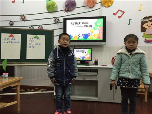 动物,一直是孩子们津津乐道的话题。在孩子们的心目中,动物王国有趣又神秘:有高大威武的狮子、老虎;有轻盈微笑的蚂蚁、蜻蜓;有在陆地上奔跑的小鹿、兔子;有在水里游来游去的小鱼、青蛙……在《动物王国》主题中,龙幼大班的孩子走进了动物的世界,开启了一段特殊之旅。结合主题活动的进程,205年11月27日,我们开展了《动物王国》主题性游戏活动。 对于大班孩子来说,动物并不陌生,孩子们基本了解了动物的名字、知道它们的生活习性。但是这已经远远不能满足大班幼儿的认知需求,他们想知道更多、更深层次和动物有关的知识,如:动物怎样睡觉、动物怎样过冬、动物的本领有哪些、动物是怎样保护自己的……为了更深入地了解动物,孩子们通过翻阅动物百科全书、让妈爸爸妈妈上网搜索、观察动物等各种渠道自主了解动物的秘密。那孩子们知道多少知识?谁知道的最多呢?我们一起开展“动物知识竞赛”来考考他们吧!比赛正在如火如荼地进行着,老师一个问题刚提出,小朋友们就高高举起小手要回答问题。孩子们就你一言我一语,激烈地抢答着,谁都不让谁,不难看出,孩子们通过学习,了解的动物知识还真不少呢! 听故事是孩子们最喜欢一个活动了,在众多故事中孩子们偏爱和动物有关的故事,像“乌鸦喝水”、“龟兔赛跑”、“猴子捞月”等都是孩子们百听不厌的故事。为了能使幼儿提高语言表达能力、锻炼他们的胆量,展示其风采,以《动物王国》为主题的“动物故事擂台赛”开始啦!看,孩子们有的讲自己编剧的动物小故事;有的回去和爸爸妈妈做了头饰和,小伙伴一起边讲边表演;甚至还有的把平时小舞台里的道具拿出来表演了一台精彩的故事情景剧呢……整个比赛中小选手们充满自信,表现得落落大方。小观众们听得认真,不停地在鼓掌为选手加油。最后由大众评委们通过投票的方式选出了本次擂台赛的冠军。 动物世界是精彩的,动物世界是神秘的。我们期待着,通过主题性游戏,孩子不但能喜爱动物,还能关注动物,善待动物,真诚而理性地对待大自然中的每一个朋友! |