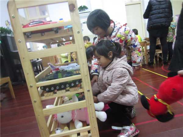 ——小班年级组《玩具大家玩》主题性游戏(盘龙园区) 玩具以其鲜艳的色彩、奇特的造型、悦耳的声响等不同的特点吸引着孩子们的好奇心和注意力,是给孩子带来快乐、启迪智慧必不可少的益友和良师。孩子在游戏中,不断体验到成功与失败,自由与规则,过程与结果,也通过玩具不断地去认识世界。为了让小班的孩子学习怎样玩玩具,让他们在满足玩的乐趣的同时,丰富自己人格的内涵,2015年11月25日,龙虎塘中心幼儿园盘龙园区小班年级组开展了丰富多彩的主题性游戏“玩具大家玩”,让这些可爱、鲜亮的玩具以及自制玩具更好地拉进孩子们彼此之间的距离。 星星1班的孩子们开展的是“玩具总动员”的游戏。在游戏中,孩子们先参观班级小伙伴们一起带来的各种玩具,有赛车、毛绒玩具、奥特曼、变形机器人、玩具手枪等等。参观结束后,老师带着孩子们一起讨论:怎样才能把玩具放得整整齐齐,哪些玩具可以放在一起呢?于是孩子们思考起来了,有的觉得这么分,有的觉得那样分。最后,在大家的协商下,孩子们共同对这些玩具进行了分类。因为都是孩子们自己带来的喜爱的玩具,他们会知道告诉小伙伴要爱护自己的玩具。同时,为了让孩子们更好地了解玩具如何玩,小朋友们还自己对自己的玩具进行介绍,并告诉小伙伴们这个可以怎么玩,现场真的是热闹极了。最后,为了让孩子们体验分享的乐趣,他们还和小伙伴们换着玩具玩一玩,每个人的脸上都挂着喜悦的笑容。孩子们都说:“今天我们玩得真开心呀,原来大家一起玩可以比自己一个人玩更开心。” 星星2班开展的是“玩转纸球”的游戏。这些纸球,可都是孩子们自己动手做出来的哦。活动开始前,老师带着孩子们和纸球一起热身:双手抓住球,两臂向上举,绕着球球走,夹球跳跳跳。接着,老师便给孩子们跑出了问题:“大家想一想纸球还可以怎么玩呢?”“可以投篮”、“可以当球踢”,“可以你滚给我,我滚给你”……孩子们的回答五花八门,却都充满着乐趣。在让孩子们充分探索了自己想出的玩法后,老师又介绍了新的玩法:赶小猪和抛接球。瞧,听了老师的介绍,孩子们便迫不及待地选择了自己喜欢的方式进行游戏。有的把纸球当成“小猪”,带着他们去散散步,累了便到“家”里去休息;有的拿着接球器,将球一抛一接;还有的把纸球当成足球,进行踢纸球的游戏……在游戏中,孩子们不仅收获了游戏的乐趣,同时还了解了一种玩具可以有多种的玩法,在收获快乐的同时,也获得了智慧。相信,以后孩子们会想到更多的玩法。 《玩具大家玩》这个主题性游戏很快告一段落了,不过孩子们对游戏的喜爱,对玩具的热爱是永远不会停止的,让孩子们与玩具做朋友,在游戏中快乐成长! |