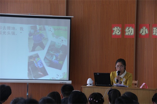 金秋送爽,快乐无限。转眼间,小班的宝宝们已经从刚入园的依依不舍、哭哭啼啼,变成现在的开开心心上幼儿园,其中的变化非常大。为了让家长能够进一步了解孩子在园的点滴,2015年11月6日上午,龙幼腾龙小班年级组结合主题《我爱秋天》,开展了“家长半日开放”活动。 孩子成长看得见 对于进入幼儿园的宝宝们,爸爸妈妈经常不放心。于是,今天开放活动中,老师们就将孩子日常的一系列活动呈现在家长的眼前:来园后的区域游戏,孩子们在开心地玩耍;早点前,孩子们用心地洗手、耐心地等待;早点时,孩子们自主去拿牛奶点心、自己戳牛奶;早操活动中,孩子们跟随音乐左右摆动,蹦蹦跳跳……这些生动的画面无一不吸引着家长们的目光,让他们不住地感慨:宝宝们真的长大了!更有家长不自觉地拿出手机进行拍照、摄像,想将孩子们的表现记录下来,珍藏心间。 亲子游戏玩得转 为了让家长们感受主题活动的内涵,同时能与孩子一起享受亲子游戏的快乐,小班组各班级分别开展了丰富多样的亲子游戏,有美工游戏《美丽的秋天》、音乐游戏《爱的抱抱》、体育游戏《丰收的秋天》等。一时间,幼儿园成了欢乐的海洋。到处都是孩子和家长开心的笑脸。游戏不仅激发了孩子与家长的参与热情,也增进了他们之前的情感。 成长分享说得好 面对孩子的成长,家长们都会心一笑。老师们将宝宝们入园至今的照片一一呈现:有刚刚入园时的大哭不止,有开心游戏时的快乐洋溢,有上课听讲时的认真思考,有午餐午睡时的自我服务……每张照片的显现都让家长们看得入神。同时,小班组邀请了两位家长代表也上台讲述了孩子在家的成长点滴。这一次次的分享让每个家长都感同身受,孩子的长大成为他们最自豪的事情。 专题讲座学问多 最后,小班年级组的教师代表针对家长们的疑惑,从专业化的角度进行了专题讲座。从孩子的心理生理特征到小班幼儿的年龄特点,从幼儿在园点滴到在家的家长关注,每一块内容都结合具体实例,将尊重幼儿、相信幼儿、充分给予幼儿机会等宝贵经验传递给了家长,更新了家长们的教育观念。 时间很快就过去了,但家长们的兴趣并未随着活动的结束而结束。看到孩子们在园的点点滴滴,家长们更多的是感叹。相信当我们用心去爱孩子的时候,便能够倾听到花开的声音! |