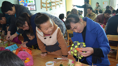 在秋风飒爽,伴着一丝凉意的日子里,11月3日上午,龙幼盘龙园区中班年级组开展了家长开放日活动。我们邀请家长走进幼儿园看一看,学一学科学育儿知识,了解一下当前幼儿教育的发展方向,并亲身参与孩子们的各种活动,与孩子们零距离接触,增进家长与孩子之间的情感。 镜头一: 当天,幼儿园内人声鼎沸、喜气洋洋,孩子们和家长们早早就来到了幼儿园,积极参与到了幼儿园组织的此次活动中,可见家长对孩子的重视。首先,家长一起观摩了孩子们的韵律早操。孩子们个个精神饱满,伴随着欢快的音乐节奏,十分投入地做着每一个动作。孩子们专注的神情、稚嫩的动作,老师们充满动感、热情的带动,感染了在场的每一位家长。 镜头二: 为了让家长亲身经历孩子在园的学习和生活,走进孩子,倾听心声。中班4个班级的老师进行了整体规划,各班举行了丰富多彩的亲子活动。月亮1班一盘盘造型新颖、色彩斑斓、果香四溢的水果拼盘在孩子和家长的积极配合下,不一会儿就呈现在了大家的面前;月亮2班的树叶贴画、手工制作桂花菊花、手掌印画等美工活动,孩子们兴趣盎然,创意十足,一幅幅充满意境的作品打造了了秋天的公园;月亮3班开心农场DIY,一个个水果、蔬菜和农作物华丽转身变成了造型各异的小动物;月亮4班的“抢粮仓”、“玩爆气球”等亲子游戏更是High翻全场,拉近了萌娃与宝爸宝妈之间的距离。欢快的笑声时时回荡在每个班级中,家长们都忍不住拿出手机,记录下这一刻的精彩瞬间,也感叹孩子升入中班后的成长与变化,很是欣慰。 镜头三: 欢乐过后,所有的家长都集中在各自的教室,各班老师就中班幼儿特有的年龄特点以及幼儿能力培养,结合本班的实际情况做了深入浅出的讲解,并向家长介绍了《3~6岁儿童学习与发展指南》的相关内容,引导家长关注《指南》,提升家庭教育的科学理念。本次活动也让许多家长感触颇深,为培养幼儿良好的习惯提供了实质性的帮助。 欢乐的时光总是短暂的,但留给孩子和家长们的回忆却是美好、回味无穷的。不少家长在活动结束后围住老师表达了收获,倾吐了感言:收获到新的教育教学理念方法,感受到老师们的爱心与辛勤,体会到家园共育的共同责任。期待在家园共育下,龙幼的小花儿们能更加美丽灿烂!