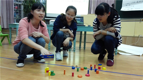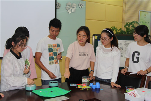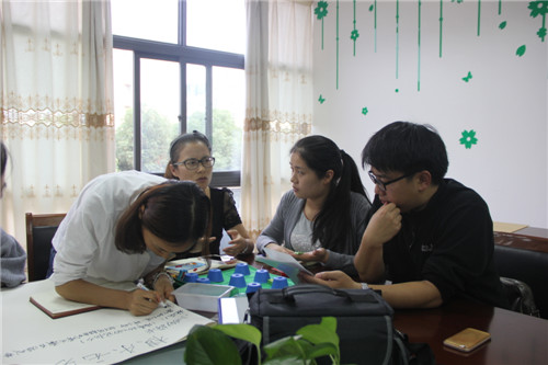 “课程游戏化”的变革在于是否从孩子角度出发思考,教师的教育行为中是否有游戏精神。棋类游戏是深受幼儿喜爱的游戏活动之一,为推进我园“课程游戏化”的实践步伐,2015年10月26日下午园本培训时间,龙虎塘中心幼儿园分园区特别开展体验式“棋类”专题游戏活动。通过开放各种棋类游戏,让老师们在游戏体验场中感受游戏乐趣,追寻游戏精神,以便更好地引导幼儿真正游戏起来。 活动一开始,主持人就抛出两个话题:“常见的棋类游戏有哪些?”“棋类游戏的作用是什么?”话题一出,各位老师就展开讨论。有的说棋类游戏可以开发幼儿的智力潜能;有的说棋类游戏可以培养幼儿良好的品质(如耐心、注意力等等);还有的说棋类游戏可以提高幼儿的抗挫能力……不说不知道,原来棋类游戏的好处可真多。 在激烈讨论后,第二环节“自主玩棋”开始了。老师们分大、中、小三个年级组,玩规定的棋类游戏。大班选择的是:小狗探长、黑白棋和飞行棋;中班选择的是:蝴蝶赛跑、海瑞塔;小班玩深海捕鱼和利用拼垫自主创棋。分好组,游戏就开始啦!看,教师们在各种棋类基本玩法的基础上,又根据幼儿的年龄特点,从激发幼儿参与棋类游戏的兴趣出发,整合各领域的教育内容,开发了若干形式多样、妙趣横生的棋类游戏。 25分钟自主游戏后,老师们以年级组为单位,逐一分享了各年级组开发的棋类游戏新玩法。分享中教师们各抒己见,分别围绕棋类活动设计的游戏性、趣味性、层次性进行了阐述,分享后再由大众评委投票评选出最佳交流年级组。 一个多小时的园本培训活动在其乐融融中结束了,相信老师们会学以致用,在平时的活动中力求为孩子打造“以棋激趣、以棋启智、以棋育德、以棋善性”的氛围,继续以棋类游戏为特点,寓教于乐,让孩子在玩中学,享棋中乐。 |