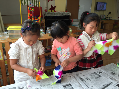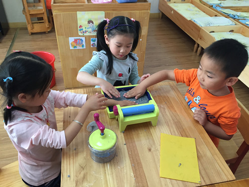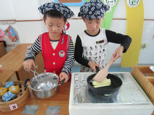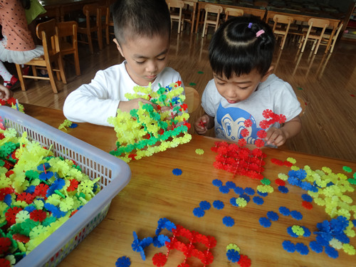 ——大班年级组《中国娃》主题性游戏 游戏是促进幼儿学习与发展的重要途径,也是幼儿童年生活的重要内容,它伴随每一个孩子的成长,并赋予童年快乐和光彩。聚焦《中国娃》主题,近日,龙幼玲珑园区大班年级组的老师们将不同类型的游戏串联成丰富多元的主题性游戏,“中国娃”们的精彩之旅就此启程! 镜头一:舌尖常州真美味 为呼应主题的核心经验,让幼儿进一步了解我们生活的城市——常州的特产以及特色工艺品,太阳1班聚焦角色游戏——舌尖上的常州。小导游带着“旅客”抵达太阳1班,有的小朋友在加工饺子、麻糕、重阳糕;有的小老板在热情地叫卖:快来买啊,好吃的银丝面、好吃的麻糕……活动现场很是热闹。 镜头二:小小建构大世界 建构游戏是幼儿最喜欢的游戏活动之一,太阳2班聚焦建构游戏——美丽的天安门。活动中,孩子们尝试建构“天安门广场”上的标志性建筑物,如天安门城楼、人们英雄纪念碑等,动手能力、空间想象能力以及手脑协调能力都得到了锻炼和发展;孩子们也用自己独特的方式表达了对祖国妈妈的祝福。 镜头三:创造游戏欢乐多 大班幼儿有极强的求知及表演欲望,为了丰富孩子们的社会经验,激发了幼儿的爱国热情,太阳3班、太阳4班侧重想象和创造游戏——精彩中国。老师带领孩子们走进“四大发明”、“武术表演”、“名胜古迹”……活动中,有的孩子尝试自己造纸,有的孩子进行武术表演,有的孩子玩转旅行棋……游戏加深了幼儿对中国文化的认识,增加了幼儿的爱国情感。 镜头四:民俗工艺显精彩 中国民俗工艺种类繁多,别具特色。太阳5班侧重创造性美工游戏——民俗工艺坊,通过创设情景,提供材料,让孩子们大胆创作。各种各样的剪纸、憨态可掬的泥娃娃、形象各异的京剧脸谱、巧夺天工的青花瓷、色彩斑斓的印染、富有童趣的水墨画在孩子们的巧手制作下应运而生。孩子们在自己动手、亲身体验中感受到了中国文化的源远流长。 各班看似单领域的主题性游戏,在年级组走班串联式的游戏活动时,实现了主题中五大领域的无痕对接,统整互补,努力指向幼儿的全面整体和谐发展,也彰显了中国龙娃们的自主、自信、能干的风采。