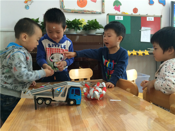 ——小班年级组《好习惯》主题性游戏(盘龙园区) 玩具是幼儿非常喜爱的事物,是他们生活中不可缺少的部分,在玩玩具的过程中,很多孩子对拿取环节并不重视,他们很多时候依赖成人来拿取和整理,不愿或没有意识到要自己整理玩具。随着《好习惯》主题活动的展开,孩子们已经知道生活中什么样的行为是好习惯,什么样的行为是不好的习惯,为了让幼儿养成主动收取玩具,整理玩具的好习惯,为了进一步提高孩子的自理能力,从小培养幼儿的分享观念和分享行为,帮助孩子们学会分享。2015年10月15日下午,龙虎塘中心幼儿园盘龙小班开展了主题性游戏“玩具整理比赛”和“玩具分享会”。 瞧,“玩具整理比赛”就要开始了!伴随着老师的问题:宝宝们,刚刚我们玩了游戏开心么?可是你们看,现在这么多的玩具都在这里,我们一起来把他们整理一下好不好?孩子们立刻自己动手整理起了乱七八糟的玩具。比赛过程中,孩子们积极地将玩具进行分类,将同一类的玩具放在一起,不仅能够分对,还能够做到速度与质量的同步,真的是很厉害!比赛的结果这个时候已经不再重要,重要的是孩子们在这个过程中,收获到了最好的习惯! 看,“玩具分享会”在孩子的翘首期盼下即将拉开帷幕啦!小汽车、小飞机、玩偶娃娃……孩子们都为了今天的活动而从家中带来了自己最喜欢的玩具。在活动的过程中,孩子们对自己的玩具很熟悉,因此介绍玩具的时候不仅能够示范给小伙伴们看怎么玩,还能和小伙伴介绍自己的玩具,真是个了不起的主人。不仅如此,他们还很大方地和小伙伴分享自己的玩具,有的换着玩,有的轮流玩,有的合作玩。在活动的过程中,孩子们一直笑得合不拢嘴。 通过这次活动,我们旨在让幼儿养成“自己的事情自己做”的良好行为习惯,以及知道分享的良好品德,促进幼儿间良好人际关系的和谐发展。相信拥有好习惯的孩子们,未来一定会更美好! |