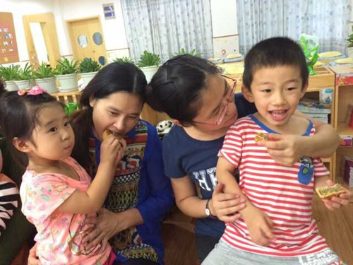 在这桂花飘香的九月,我们即将迎来一年一度的“中秋节”,为给小班的孩子一个别样的节日。2015年9月25日下午,龙幼玲珑园区小班老师联合大班年级组及家长的力量开展了丰富多彩的庆中秋活动,让孩子在通过感受、尝试、品尝的过程中感受中秋佳节的喜悦氛围。 篇章一:中秋狂欢会 随着中秋节乐享节日活动的展开,孩子们对中秋节有了一定的了解,也产生了浓厚的兴趣。为了让小班幼儿更加深入的了解中秋节、感受中秋节,星星3班和星星6班的老师专门邀请了太阳4班的的哥哥姐姐们来带领小班弟弟妹妹一起开展了一个愉快的中秋狂欢会。活动前,大班的哥哥姐姐做好充分的准备,向弟弟妹妹们展示才艺。有的哥哥姐姐给小班的宝宝们绘声绘色地讲了故事“嫦娥奔月”,让弟弟妹妹了解了中秋节的来历及中秋吃月饼的习俗;还有的哥哥姐姐表演了歌曲《爷爷为我打月饼》等等。最后,弟弟妹妹们也同样以表演互动,稚嫩而认真的表演也赢得了哥哥姐姐的热烈掌声,整个会场热闹而温馨!中秋狂欢会,不仅增强了大班孩子的责任感、任务意识,也促进了小班孩子与人交流的愿望和能力。 篇章二:中秋喜乐会 幼儿园的教育离不开家长的积极配合,这一次,星星8班的老师把目光聚集到了能干的爸爸妈妈们身上,请爸爸妈妈入园和孩子们共庆中秋。韩承优小朋友的爸爸带着精心制作的PPT给孩子们讲述的是中秋节的习俗和《月饼的由来》,生动、活泼的语言和直观的图片吸引着孩子们的目光。紧接着,精彩的亲子月饼装扮会开始啦!妈妈教小朋友怎样均匀地涂色,使月饼立刻“穿新衣”;爸爸鼓励小朋友尝试不同的材料,使月饼变得特别……这是多么有趣的一次生活小课堂。爸爸、妈妈、老师……我们快乐地在一起,团团圆圆,共贺中秋。孩子们在轻松愉悦的氛围中,在家长们的引导下,尝试了画、撕、粘、贴……不一会儿,一个个月饼“出炉”啦,看着自己亲手做的“月饼”,孩子们格外激动。 篇章三:月饼分享会 在中秋节当天下午,小班的每个班级都开展了“月饼分享会”活动。当美味的月饼呈现在大家面前,有豆沙、蛋黄、莲蓉,凤梨等多种丰富的口味。一个个圆圆的、香香的月饼,看得小朋友直流口水,一口咬下去,不时还有孩子发出阵阵赞叹声:“真好吃”、“我还要一个”、“老师你也吃一个”……同时,在孩子们分享品月饼时,也懂得了与家人分享,传递这份团圆的快乐。 此次活动不仅加深孩子们对我国传统节日的了解,真正体验到节日的丰富多彩,更让孩子们从中体验到了同伴之间友爱、互助、分享的快乐,以及幼儿园大家庭的团结、和睦、快乐的氛围。相信这种幸福、温暖的味道会让孩子们更加喜欢上幼儿园! |
