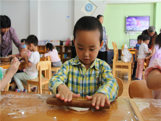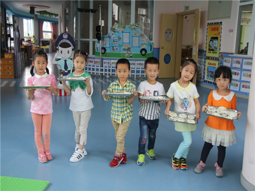 在月亮4班教室里,正在开展着主题性游戏“中秋面点师”。小小面点师们认真学习制作月亮饼,灵巧的小手在面团和馅儿之间挥舞,亲自动手制作的月亮饼,卖相也许并不好看,但是一定很香。月饼烤熟之后,月亮4班的小朋友们端着月饼,在老师带领下,将月亮饼送到其他4个中班,共同分享好吃的月饼,提前祝大家中秋节快乐,这样的主题性游戏让孩子在游戏体验中了解、知晓了有关中秋意义和传统礼节。