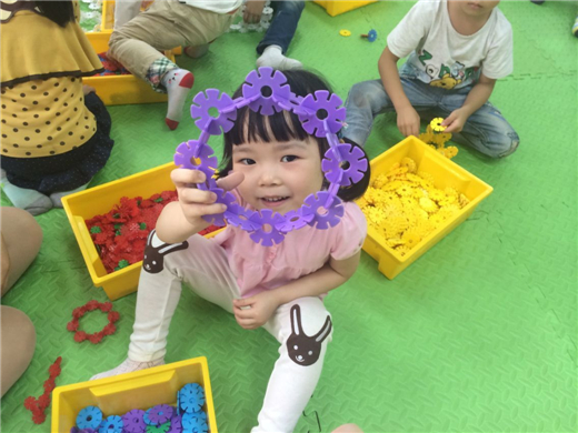 如果说月亮5班的小朋友是以“快乐”为中心点建构月饼,那月亮3班的小朋友就是以“巧手”为中心点开展了主题性游戏“月饼建构师”。前期老师招募了6名家长志愿者一起进班。在孩子、家长、老师的共同协作下,一个小时不到的时间,“爱心型的月饼”、“花形的月饼”、“圆形的月饼”等等各式各样的月饼就诞生啦!在这样的主题性游戏中,不仅激发了幼儿表现美、创造美的愿望,还能依托传统节日实践活动,让幼儿感受中国名族特有的传统文化的魅力。