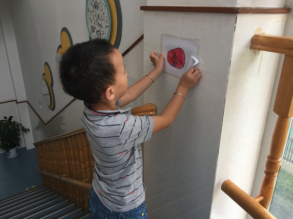 主题“我们的新班级”让小朋友们认识了很多标志,知道了各种标志的用途,大开了眼界。于是,太阳3班,太阳4班的孩子们在主题性游戏中充分发挥主人翁意识,给自己美丽的校园设计了标志。通过前期老师的引导,孩子的相互讨论,他们有的为走廊、楼梯设计了“小心慢走”的标志,有的为小花坛、绿植区设计了“爱护花草”的标志,还有的为大厅的某个区域设计了“遵守规则”的标志……在活动中,孩子们用稚嫩的双手开始了小小设计师之旅,他们考虑着校园的每个角落需要怎样的规则,然后用自己的理解把它画出来,并且在老师的带领下,张贴到了相应的位置,让校园里的所有人在平时的生活游戏中有章可循。看着这些作品的呈现,孩子们体会到了满满的成就感!