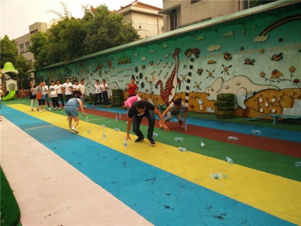 为了进一步推进我园“课程游戏化”的实践步伐,龙虎塘中心幼儿园利用9月14日下午园本培训时间,分园区开展了体验式体育专题游戏活动。本次活动根据体育学科特质,通过两种形式的游戏体验,让老师们在游戏体验场中感受游戏乐趣,追寻游戏精神,以便更好地引导幼儿真正游戏起来。 镜头一:你争我夺,快乐游戏 第一个游戏开始前,带队老师提前布置了一定数量的矿泉水瓶在操场上,并详细进行了玩法介绍。紧接着,各年级组派5名教师代表参加比赛,一组负责放到矿泉水瓶,另一组则负责扶正矿泉水瓶。看,在规定的时间内,年级组老师们争分夺秒,默契配合,并采取一定的战术和策略,努力让自己的队伍能够取得最后的胜利。 镜头二:喊号接球,畅享游戏 第二个游戏在老师们的热切期盼中开始了。瞧,各年级组老师们分别围成了一个大圆圈,依次报数,并且记住自己的号,大家听号接球。瞧,有的老师反应极快,能够稳稳地将球接住;而有些老师没能接住球,只能想方设法去砸中目标……操场上,报数声、欢笑声、加油声连成了一片,可以看出老师们都很喜欢这样的游戏,更想熟悉玩法以后能带着孩子们来玩一玩,让孩子们也能体验游戏带来的快乐。 镜头三:畅谈体验,推进游戏 每个游戏结束后,老师们在主持人的带领下,针对每一个游戏的环节,从材料的准备、场地的选择、规则的制定、人数的限制等各方面都进行了反思交流,并提出了合理的建议。最后,各园区负责人对本次活动进行了总结,对于老师们的游戏体验和精神给予了高度的评价和中肯的意见,希望老师们能够通过真实践,来不断追寻游戏的真谛。 相信通过今天的活动,老师们在以后的工作中会不断创设更加精彩的体育游戏,让幼儿畅游在游戏中,乐智乐心,自由自在。让我们一起推进课程游戏进程,让游戏的理念深入人心,落地深根。
