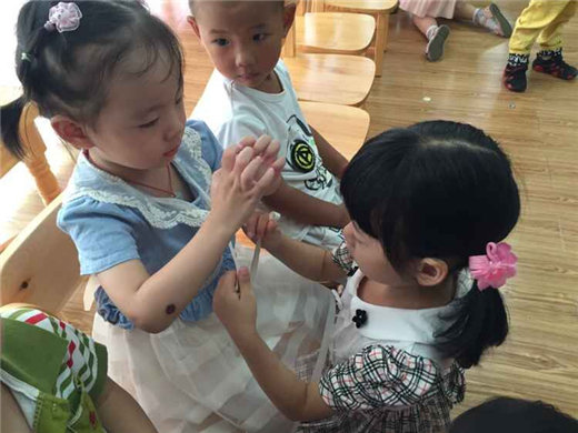 新的一学期已经悄然而至,“中班”在小班幼儿心目中是一个早已被向往的班级。暑假过后,小班的幼儿升入了中班,这是一件值得他们高兴的事情。为了使幼儿知道自己在渐渐长大,认识到自己不仅是“身体在长大”,还有“本领也变大了”,让他们产生长大了的自豪感。龙虎塘中心幼儿园(玲珑园区)中班年级组在本周围绕 “快乐的我”、“能干的我”、“懂事的我”、“自豪的我”陆续开展了精彩纷呈的主题性游戏,让中班的幼儿在游戏中的活动中获得更直观的认识。 镜头一:懂事的我——我来当地导。 升入中班的幼儿经过一年小班的幼儿园生活,对于幼儿园各个教室及专用活动室都比较了解。月亮4班的小朋友们走进星星7班,开展了主题性游戏“龙幼小地导”,通过一对一牵手小班的弟弟妹妹,为刚入园的弟弟妹妹做小地导。瞧,他们一边走一边介绍着各个专用活动室,在上下楼梯时还不忘提醒小班的弟弟妹妹要小心慢走。不知不觉中,孩子们在这过程中知道了自己的成长,变得越来越懂事了。 镜头二:能干的我——当家我最棒。 在日常生活中,小朋友在自理能力上常常要依赖家长、老师。升入中班后,月亮1班和月亮2班针对这一现象开展了主题性游戏“当家我最棒”,给孩子提供多种操作、实践的机会。你看,自然角中孩子在帮植物浇水;午睡起床后,孩子们尝试自己自己叠被子;课堂中,孩子自己设计规则标记……孩子在看一看、说一说、试一试中不仅感受到自己身体方面的成长,又感受到自己在心智、能力等方面提高。 镜头三:快乐的我——牵手一起high。 孩子升入中班后,成为了中班哥哥姐姐。为了让他们进一步感受到自己长大了,月亮3班牵手星星6班,开展了主题性游戏“月亮星星high翻天”。游戏中,中班的小朋友带着小班的弟弟妹妹一起玩手指游戏、表演故事、舞蹈,大家各自用不同的方式表现自己对小班弟弟、妹妹的关爱、安抚。这不仅萌发了中班小朋友做哥哥姐姐的关荣感和爱护弟弟妹妹的情感,另一方面也使得刚入园的小班幼儿能更快更好地适应集体生活,体验到了在幼儿园的快乐。 镜头四:自豪的我——送礼我自制。 中班幼儿社会认知能力明显提高,能关心他人的情感反应,出现了最初步的关心、同情反应;友好、助人、合作行为明显增多。针对中班幼儿社会认知的特点,月亮5班开展了主题性游戏“给弟弟妹妹送礼物”。在孩子们的巧手制作下,普通的纸杯被制作成了各种不同的物品,有太阳花、狮子、章鱼等等。接着,孩子们又前往星星7班,为小班的弟弟妹妹送上了一份自己的心意。在整个游戏过程中,孩子们积极而快乐,自由而自主。 长大是从一张白纸到色彩斑斓, 长大是蜕变的过程,长大是成长的经历,长大是一件快乐幸福的事情!愿龙幼的孩子们长大的过程中获得知识,在长大的过程中获得最真的快乐!