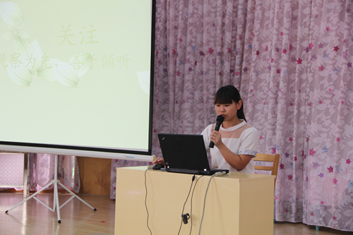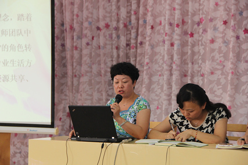 读书、反思、分享已经逐渐成为我们龙幼教师的一种生活方式。在暑假里,老师们休息之余也不忘充电学习,读书后的心得体会也精彩纷呈。在今天的会议中,部分老师将自己的读书心得与大家进行了分享。王志薇老师结合省课程游戏化讨论,以“如何观察幼儿”为切入点,与大家分享了她的学习简报。张静、孙艳老师分别从不同的视角出发,结合着工作实践,将她们的深刻体会和感悟与大家共享,其中“关注”、“助推”、“辐射”等关键词不断出现,让全体教师深刻感悟到,我们应当努力发展适宜性游戏,引导幼儿向更高水平发展。