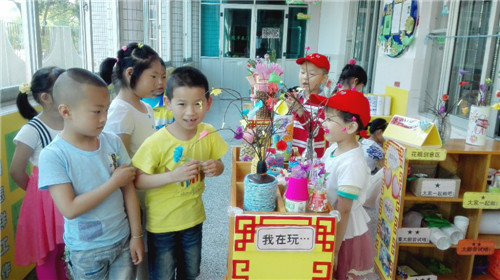 ----大班年级组《人们怎样工作》主题性游戏 现代社会已经是多元分工的社会,每一个人都承担着不同的社会工作职责,每天都有可能产生新的工作机会。各种职业对幼儿来说都是既熟悉又陌生的,幼儿平时能了解到身边一些人的工作,同时又对这些工作充满好奇。随着主题《人们怎样工作》的展开,与“工作”有关的各种主题性游戏活动在如火如荼进行着。 镜头一:我是名主播,新闻我来说 新闻节目,爸爸妈妈每天都在看,里面讲述最新的时事要闻,在家就能了解到全新的全球消息。我们的孩子们也想体验小主播的职业呢!看,小记者拿着话筒进行采访。娴熟的动作,专业的表情,真的像是工作经验丰富的老记者了。听,名主播出镜了,他稚嫩的童声,清楚的表达,让小观众们了解了更多外面的精彩! 镜头二:服装设计师,属我最新潮 夏天来了,各式各样设计特别的新款服饰出现在大家眼前。这些衣服是怎么设计出来的呢?今天,孩子们也来尝试设计2015夏季最新款式的衣服。孩子们仔细思考,大胆创新,都设计出了独特的夏季服装新品。瞧,他们还会跟着音乐来走秀,进行服装新品发布会呢!在游戏中,孩子们去探索发现设计师的工作特点,感受体验做设计师的意义,去了解喜欢这份工作,萌发爱劳动和爱劳动者的美好情感。 镜头三:花店我当班,给你最新鲜 在我们的生活中,鲜花店到处可见。今天我们的花店开张了,娇艳的玫瑰、清新的百合、热闹的满天星……花店里面的品种可真不少呢!瞧,来“花店”买花的顾客络绎不绝,店主们热情地招呼、用心地介绍、精心地包装,一个个忙得不亦乐乎! 镜头四:未来新产品,由我来发明 生活中的废旧物品很多,扔掉十分浪费,我们可以废旧物品再利用,创设出更多有用的东西。看,孩子们的创意无限,用废旧纸箱组合在一起做成机器人,用过的纸杯经过孩子们的小手变成了台灯!……孩子们的创意还有许多,未来的小发明家就是他们喽! 在本主题中,孩子们通过各式各样的角色体验,发现成人的工作特点、工作态度,感受成人工作的意义,萌发爱劳动和爱劳动者的美好情感。游戏,是孩子最喜欢的学习方式,让我们用满满的爱心,带着孩子一起探索美妙的游戏世界吧!