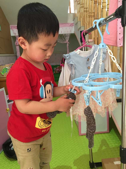 ──小班年级组《六个好宝贝》主题性游戏(腾龙园区) 随着主题活动《六个好宝贝》的进行,孩子们通过丰富多彩的活动发现,自己的眼睛真明亮,可以看见缤纷的世界;自己的耳朵真灵,可以听见有趣的声音;自己的鼻子除了呼吸,还能闻到香香、臭臭等多种多样的气味;自己的嘴巴不仅能说话、唱歌,还会品尝酸、甜、苦、辣;自己的小手小脚更是能干,有着很多不一样的用途。为了进一步让幼儿感知拥有“六宝”的幸福感,5月19日,龙幼腾龙园区小班年级组各班分别开展了“我的小手真能干”、“宝贝总动员”、“小鬼当家”主题性游戏。 走进星星1班的教室,只见快乐的“粉刷匠”们正在用灵巧的小手粉刷装饰着他们的房子。“小画家”们正在创作着一张张“夸张的嘴”。咧嘴大笑,俏皮吐舌,得意呲牙……通过勾线笔以及蜡笔的配合使用,一张张有趣的“嘴巴”在宝宝们能干的小手下诞生啦。还有的宝宝将图片上的眼睛、鼻子、嘴巴等五官剪下,用胶棒粘在小朋友画的脸上,大家一起合作游戏,真是有情有趣。 来到操场,星星2班的孩子们正在热火朝天地进行着有趣的户外游戏。专心致志来垂钓,手眼协调套圈圈,你追我赶揪尾巴……各种好玩的游戏正在开展,吸引着孩子们来参与其中,乐在其中,充分感受着自己“六个好宝贝”的重要作用。 星星3班的宝宝们又在干什么呢?走进星星3班的教室仔细一瞧,一本本整齐的图书,一件件美丽的手工作品,一双双晾晒好的袜子……星星3班的宝宝俨然是一个个能干的“小主人”,正在整理着并装饰着自己的“家”。小鬼当家,真是有模有样! 在班本化的主题性游戏中,孩子们充分体会到了人人都有六个宝,六个宝贝都重要。亲爱的宝贝们,让我们一起充分利用自己的六个好宝贝,积极地去感知世界,充分感知“自我”,体验到自己的价值吧! |