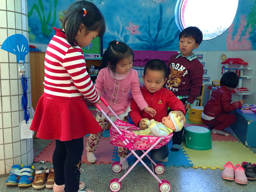 随着主题《我的故事》的深入开展,我们发现孩子们对独特的“我”有了初步的认识,知道自己在渐渐长大,自己的身体、外貌、学习、生活能力都在变化,形成了积极的自我意识,从而更加接纳、肯定、喜欢自己。2015年4月23日,龙幼盘龙园区小班年级组分别以不同内容的主题性游戏将主题带入了高潮。 音体室里,伴随着动感十足的音乐节奏,小3班的小朋友们在缤纷的小舞台上一展自己的风采。参加表演的宝贝们个个神气十足,积极投入。五颜六色的假发,漂亮可爱的服装,酷酷帅帅的Pose,T台上一道道亮丽的风景线,让音体室里不时爆发出阵阵喝彩声。在这里,孩子是活动的主人,舞台的主角,每个孩子的脸上都展示着自信与快乐,为“我的故事”涂抹了别样绚丽的色彩。 走廊区域游戏中,孩子们也一样展现着独特的自我。美工区里,能干的小朋友用一双双灵巧的小手创造着一件件作品;建构区中,爱奇思妙想的小朋友一起徜徉在城堡的世界;娃娃家里,孩子们快乐地去做客,热情的“小主人”文明有礼貌,招待更周到……孩子们在走廊的各个角落投入到不同的游戏中,大胆展示着自己能干的一面。 不同的游戏,不同的精彩。孩子们在游戏中更加了解自己、更加喜欢自己。“我的故事”还在继续。让我们一起伴随着孩子成长的脚步,让快乐的童年乐享在游戏的美好中!