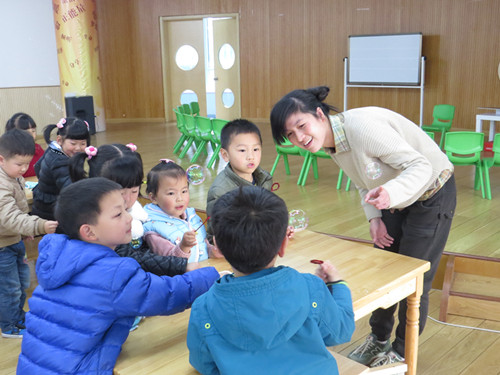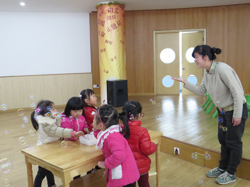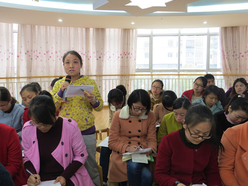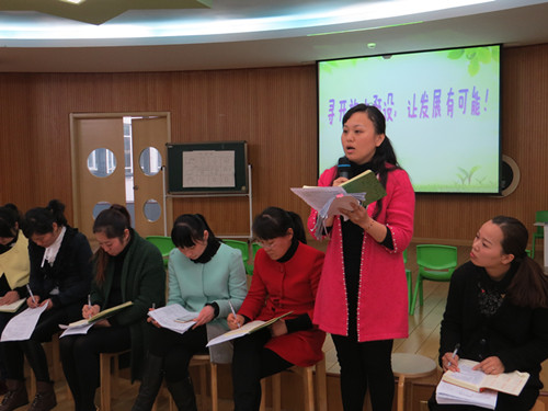 四月,桃红柳绿,莺歌燕舞,春意盎然的龙幼校园,各类教学教研活动正如火如荼地开展着。4月13日下午,围绕课题月关注点“寻开放的预设,让发展有可能”,我园全体教师齐聚玲珑园区会议室,开展了2015年度第2次骨干教师示范、分层教研及课题活动三位一体的新型教研活动。通过现场听课、专题教研的形式,在真问题、真教研中,各层次教师互动研讨,在智慧碰撞中积累操作经验,提高润泽课堂实践能力,梳理课题经验小结。 骨干示范,引领成长 首先,我园区骨干教师培养对象胡华老师面向全体教师,展示了一节小班科学活动《吹泡泡》。本活动强调幼儿自己动手操作,自主探索,让幼儿在实验的过程中验证自己的猜想,在玩的过程中提升孩子的已有经验,充分体现孩子玩中学、学中玩的教育理念。活动前,胡老师能够在幼儿学习方式、师生互动、活动组织等多方面进行充分的预设。活动中,胡老师也能巧妙地捕捉和利用现场幼儿呈现出的差异资源,判断恰当的互动时机,预设与生成相结合,让幼儿得到不同的发展。 分层教研,专业切磋 在教研开始前,教师们就按照不同的教龄分区域看课并做好相关听课记录。课后,围绕课题月关注点“寻开放的预设,让发展有可能”,主持人及时抛出了讨论话题,老师们围绕问题去讨论,各抒己见,碰撞出许多火花:青年教师从教学方法、教学过程等方面入手,全面地阐述自己的观点,理论充分,表现出良好的素质;成熟教师根据活动现场的“预设”与“生成”,提出了不同的意见和建议,目光独具,显示了专业的魅力;骨干教师则用自己丰富的教学经验及时解决了现场出现的意见分歧,回答精辟,彰显着骨干教师的示范引领作用。不同层次教师之间的专业切磋、互相学习、彼此支持,共同营造了求真务实、科学严谨的教研氛围,有效地提高了本次园本培训的教研质量。 精彩点评,期待成长 在主持人对本次活动的概括总结后,吴紫阳副园长对本次活动给予了高度的评价:老师学指南用指南的意识越来越强;活动现场研讨的氛围越来越热烈;主持人准备工作用心充分;骨干教师胡老师更是基于孩子的真活动、基于幼儿的真水平,用实际行动诠释了教师和幼儿学习的过程就是要拥有“牵着蜗牛去散步”的心态和精神。期待全体教师在追寻润泽课堂的道路上,一起携手,做一个看得见、等得起、引得了的老师。 本次园本培训活动,让更多的老师从“默默无闻”的教研守望者,成为研究活动的主体,促进了不同层次教师的专业化发展,实现了有效学习的教研目的。我们将用爱心点燃心灵之火,用责任擦亮理想之光,与润泽教育一路同行,一路追寻,一路耕耘……