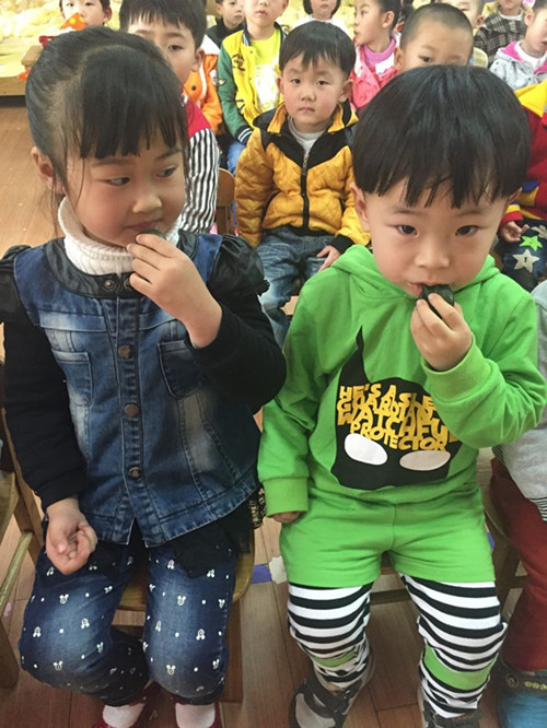 下午点心时间,孩子们品尝到了自己亲手参与制作的美味青团,而且,孩子们还懂得分享,将自己亲手DIY的青团,拿去与星星2班、星星3班的朋友们一起品尝呢!