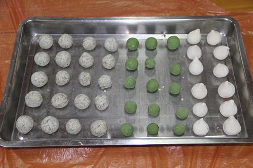 在活动之前,老师和奶奶们可是做足了准备,提前准备好了各种馅料,有豆沙馅、油酥馅等。到了现场制作时间,孩子们一个个挽起袖子,跃跃欲试。他们在奶奶们的指导下,取少许面团用两只小手慢慢的搓圆,再在掌心压成小饼,包入馅料,搓成小球状。经过一番努力,一个个青团包裹着孩子们喜悦呈现在眼前。孩子们敢于尝试,积极参与的状态也获得了奶奶们 和 老师们的一致点赞!